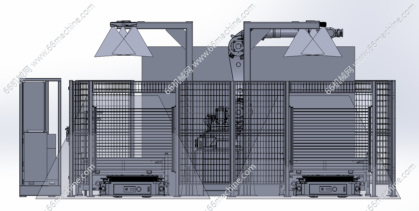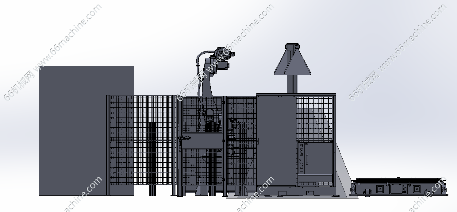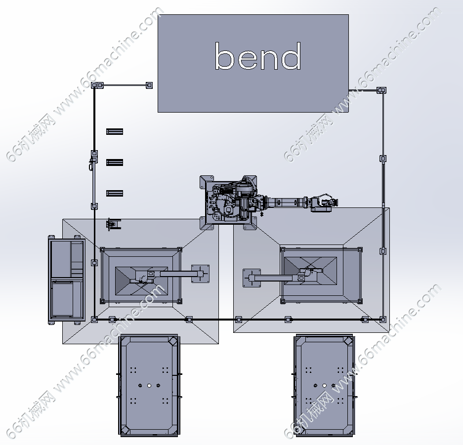 本模型为基于机器人上下料的折弯机,主要由六轴机器人、折弯机、AGV车、安全围栏、电控箱等组成,机器人自动上料至折弯机内折弯并下料,可作为方案参考!