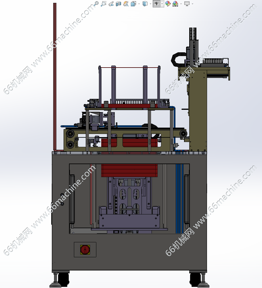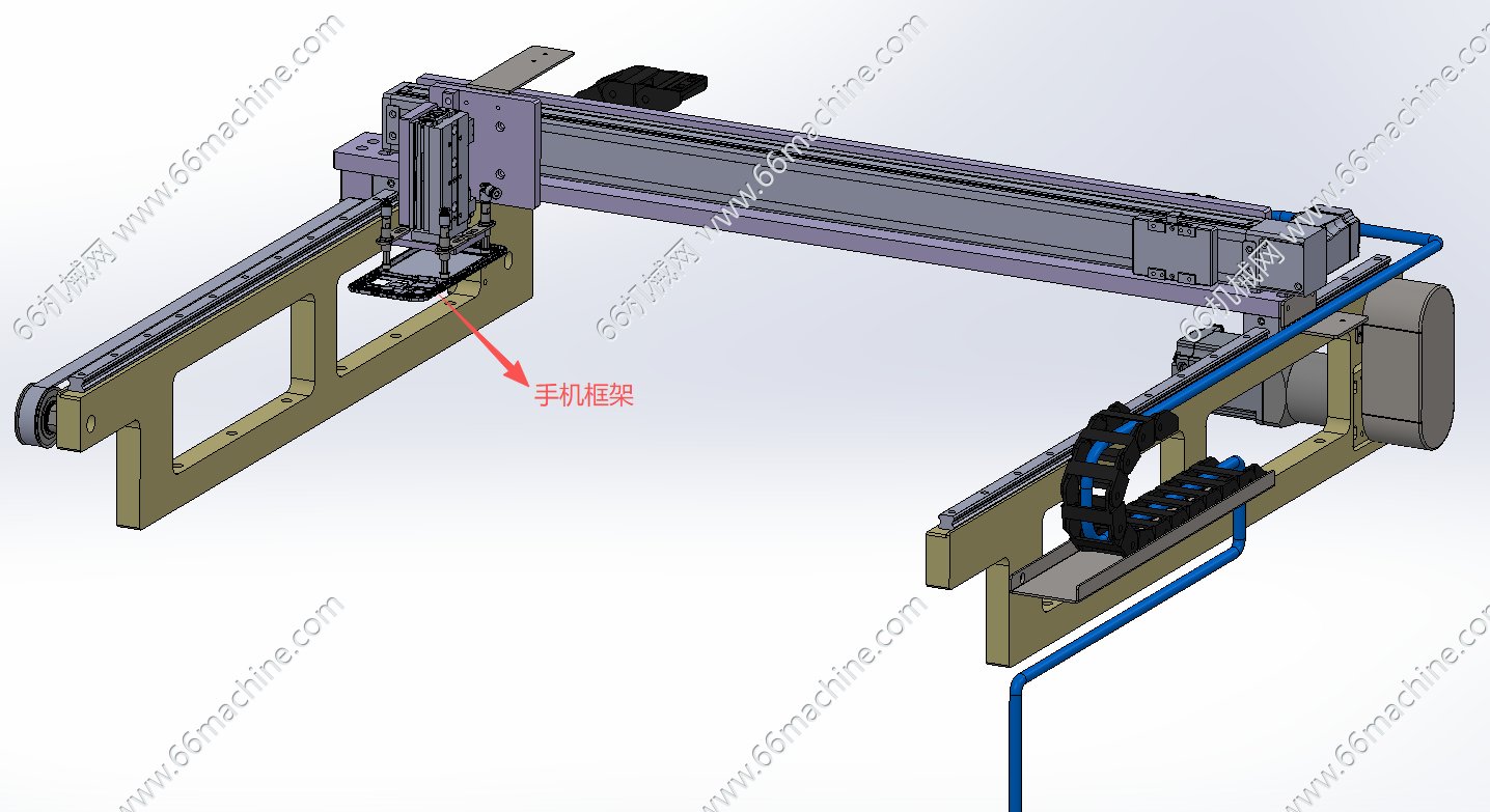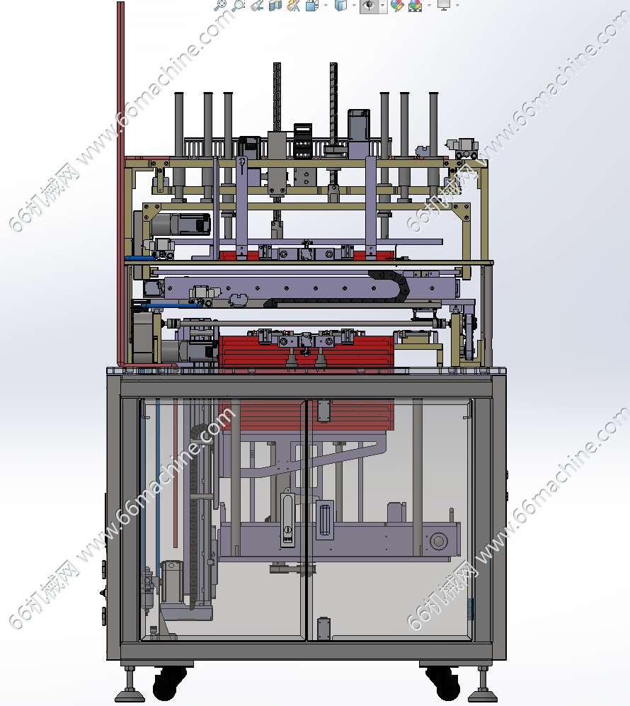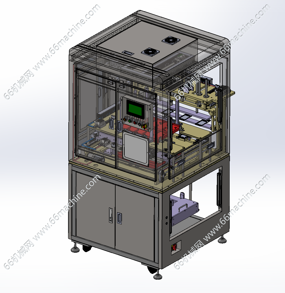 本模型为手机框上料机,主要由下机架、机罩、三轴吸取移送机构、升降托盘料架、上托盘定位机构及手机框压紧定位机构组成,主要用于将托盘内的手机框进行自动上料并定位,便于后续装配或检测,可供大家参考!