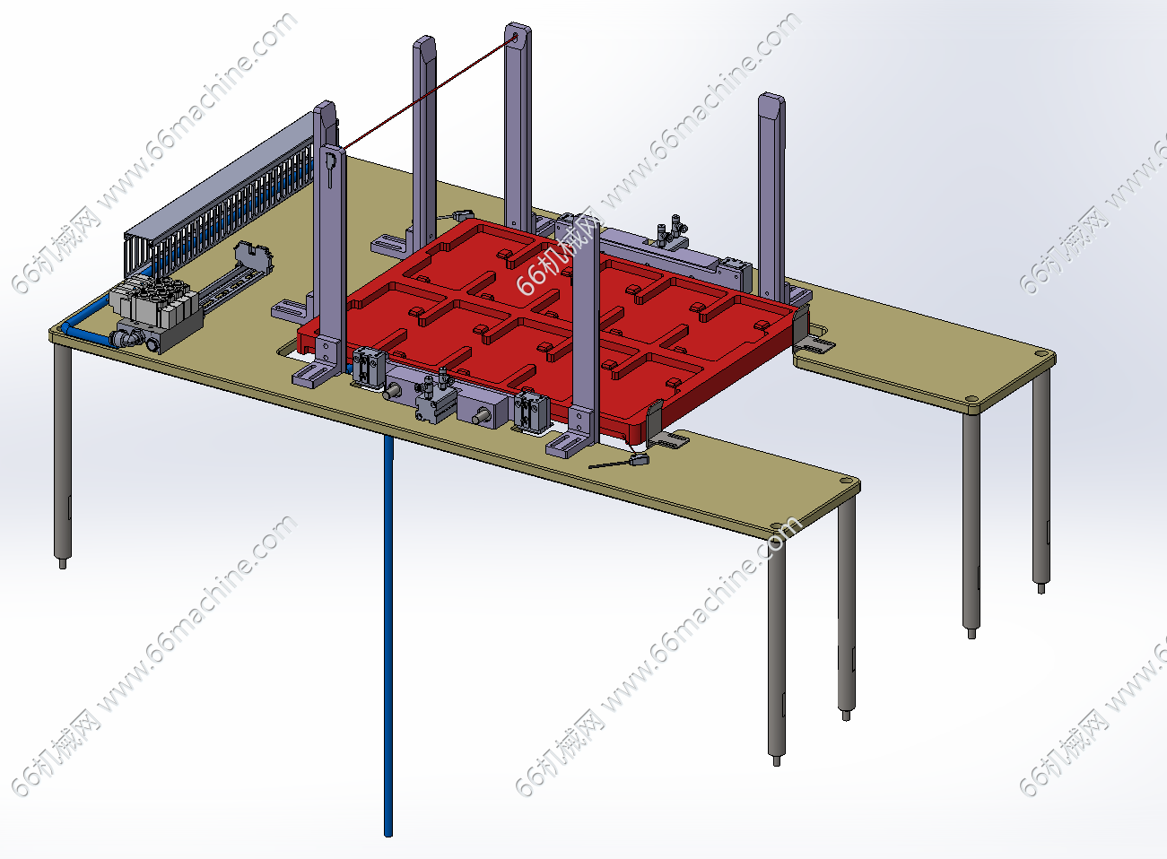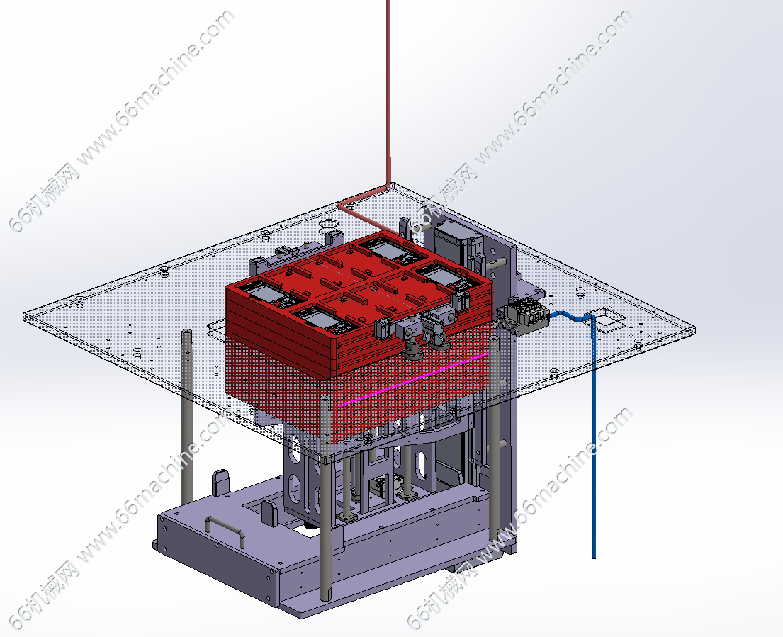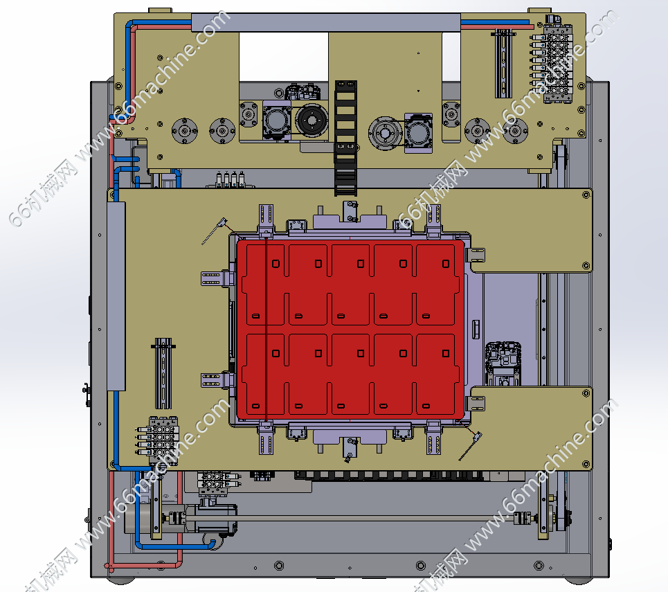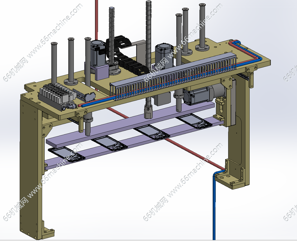 本模型为手机框上料机,主要由下机架、机罩、三轴吸取移送机构、升降托盘料架、上托盘定位机构及手机框压紧定位机构组成,主要用于将托盘内的手机框进行自动上料并定位,便于后续装配或检测,可供大家参考!