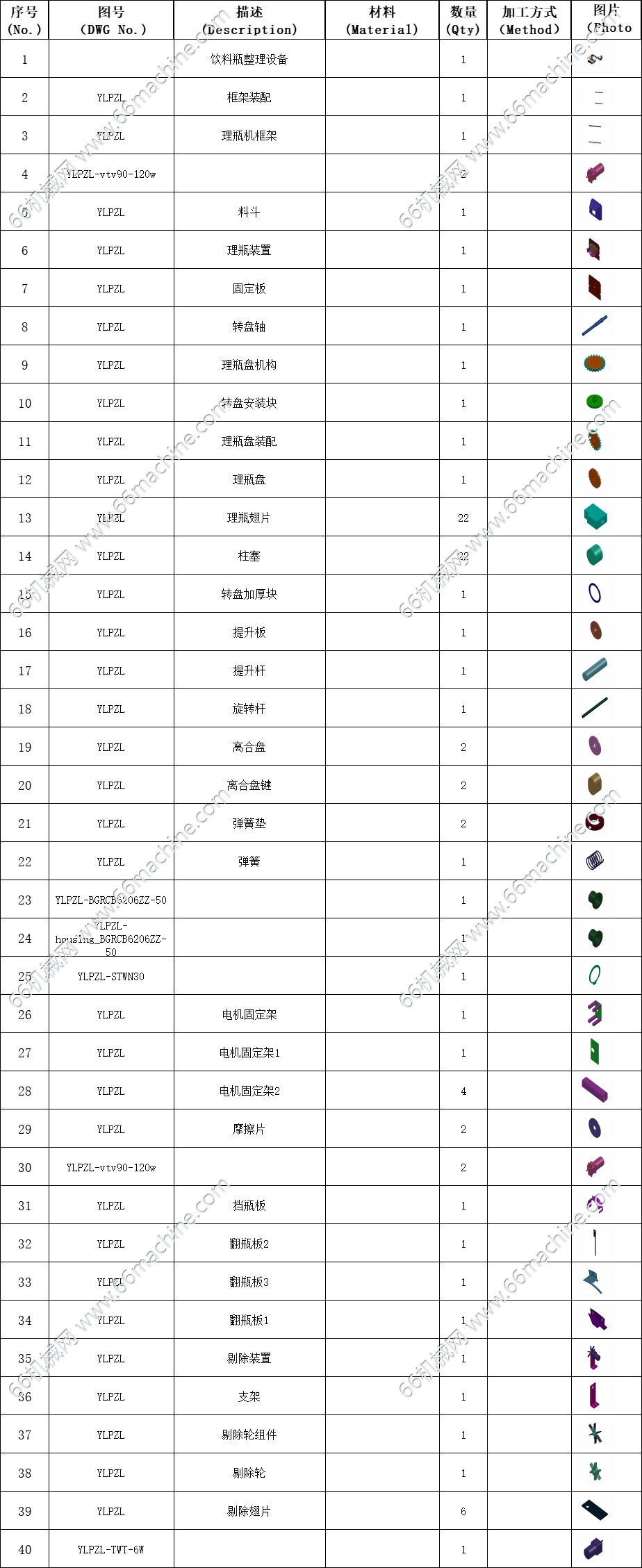 某企业饮料瓶、药瓶等瓶类整理机(理瓶机)3D+BOM表