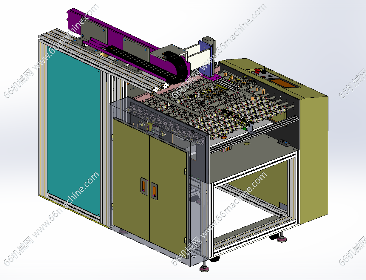 本模型为面板等板材类滚轮线收板机,主要由机架、吸取移送模组、可调式料架及滚轮输送线(含居中机构)等组成,可用于板材类产品的自动居中收料并叠板至料架内,料架可调以适用于不同规格的板料,欢迎参考!