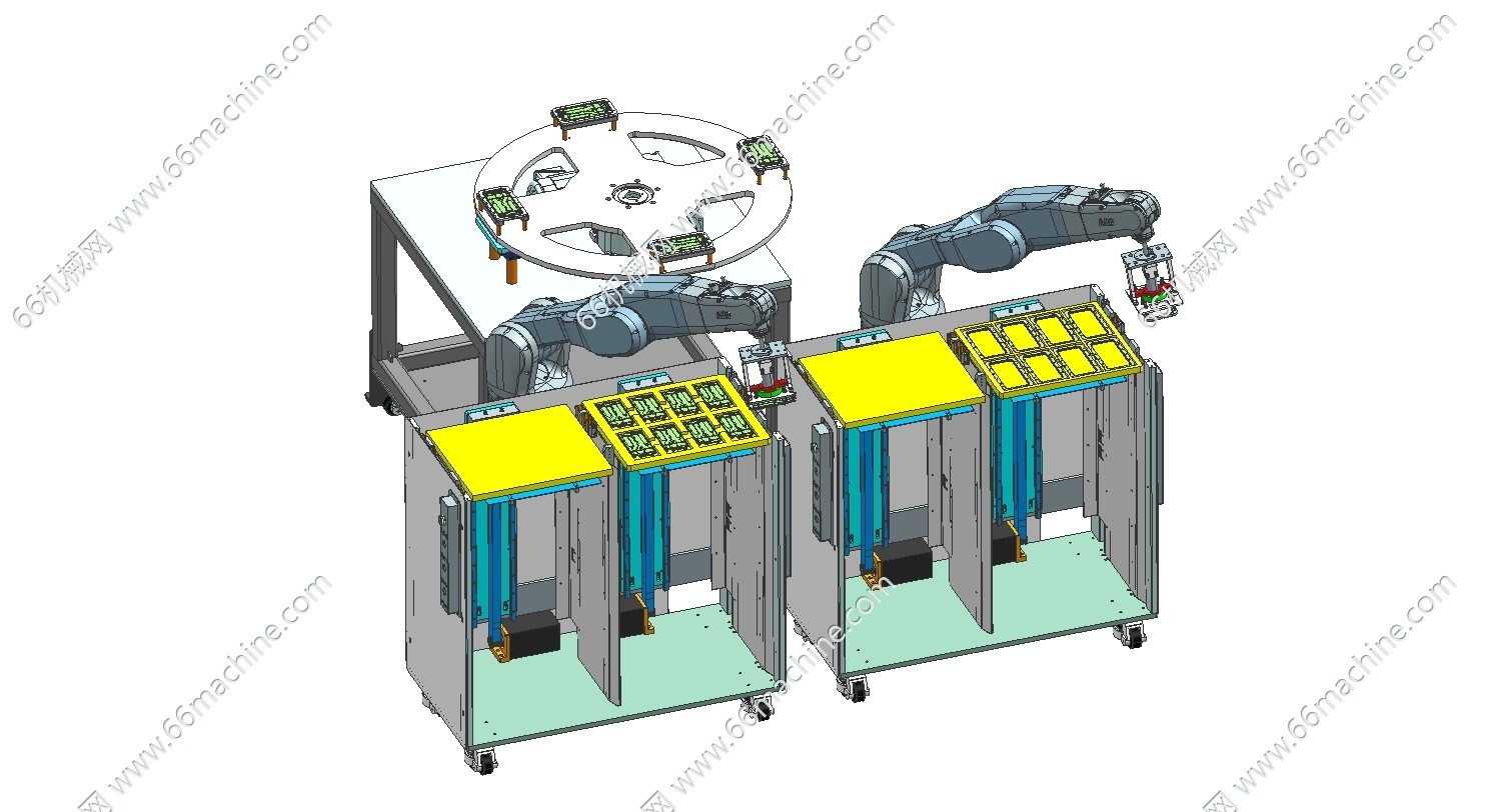 图纸分享的是一份手机中框和铝片自动上料机,中框和铝片由两台单独的供料机上料,机械手带有视觉,通过分别抓取产品放到转盘工装上面定位,图纸X-T格式,欢迎下载,