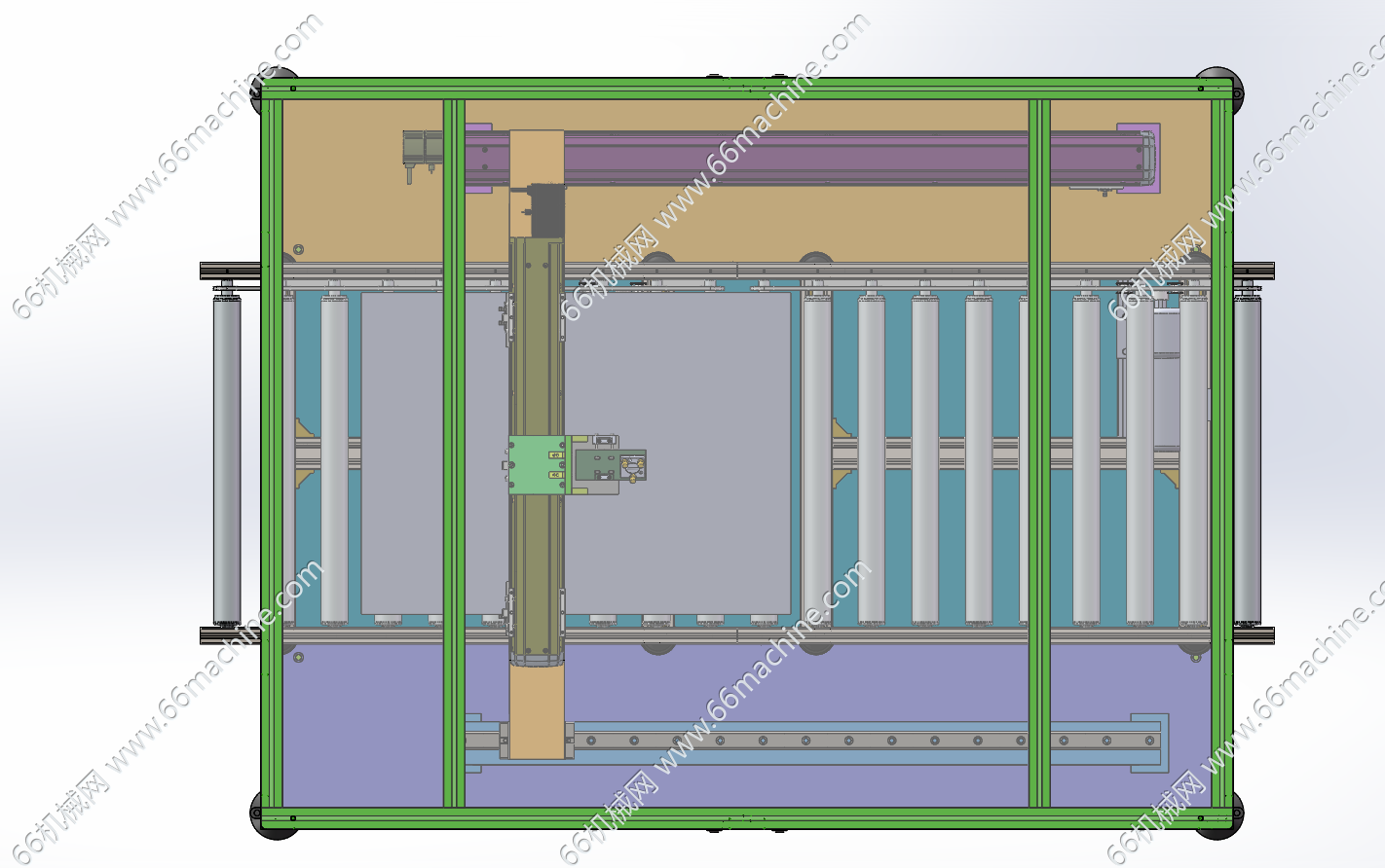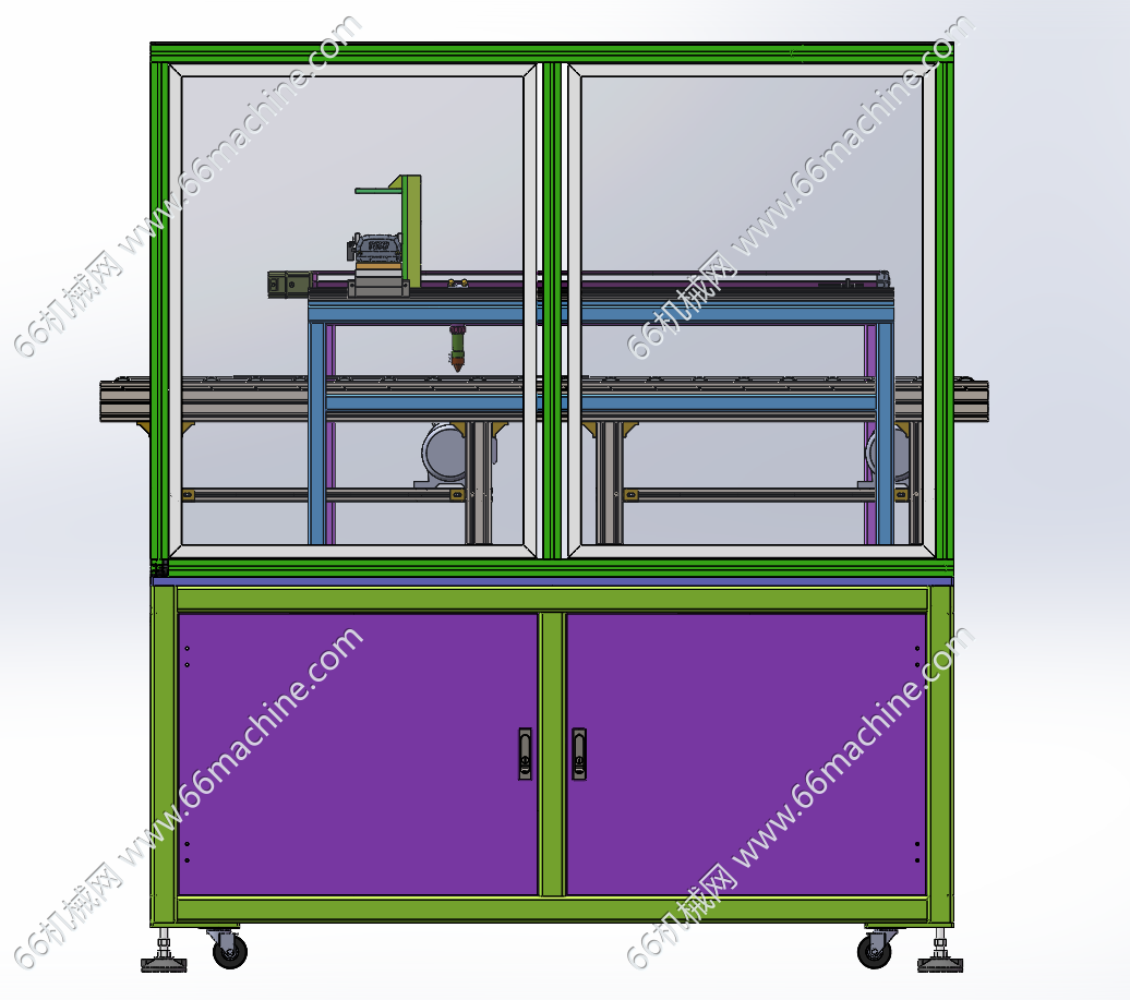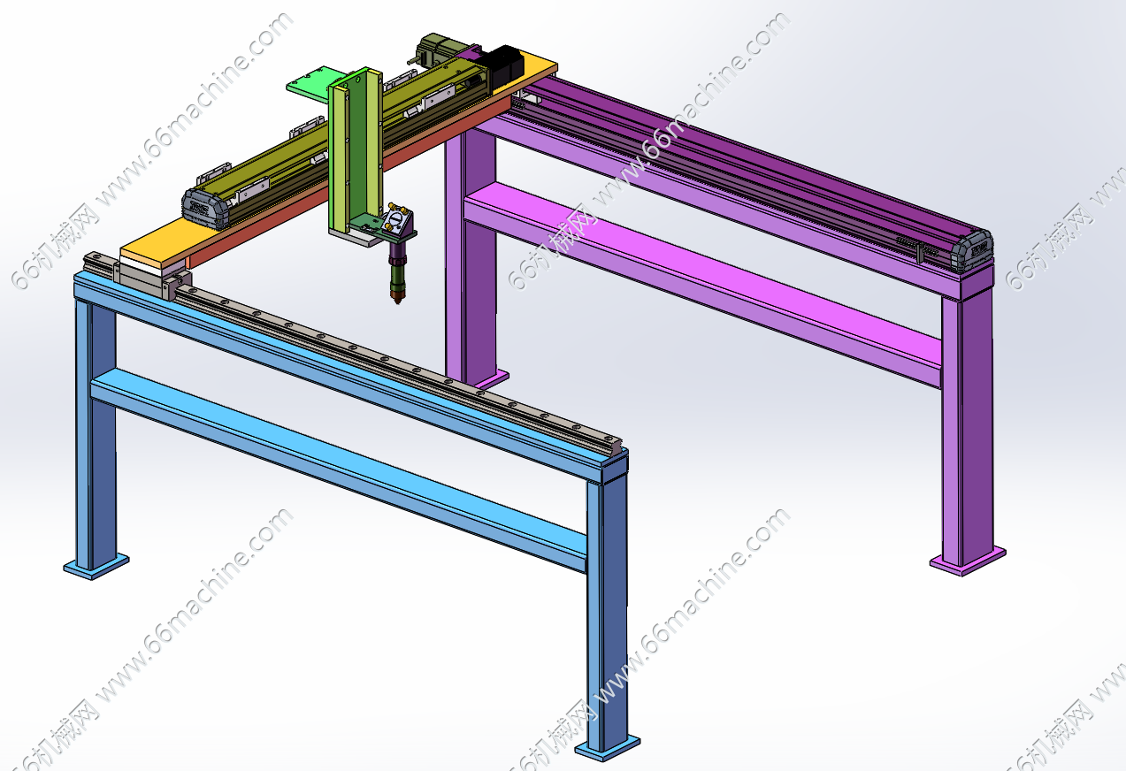 本模型为在线式板料激光切割机,主要由机架、滚筒输送线、XY轴伺服丝杆模组及激光头组成,伺服电机定位精准,运行稳定。板料从滚筒线流入并在线切割,欢迎参考!
