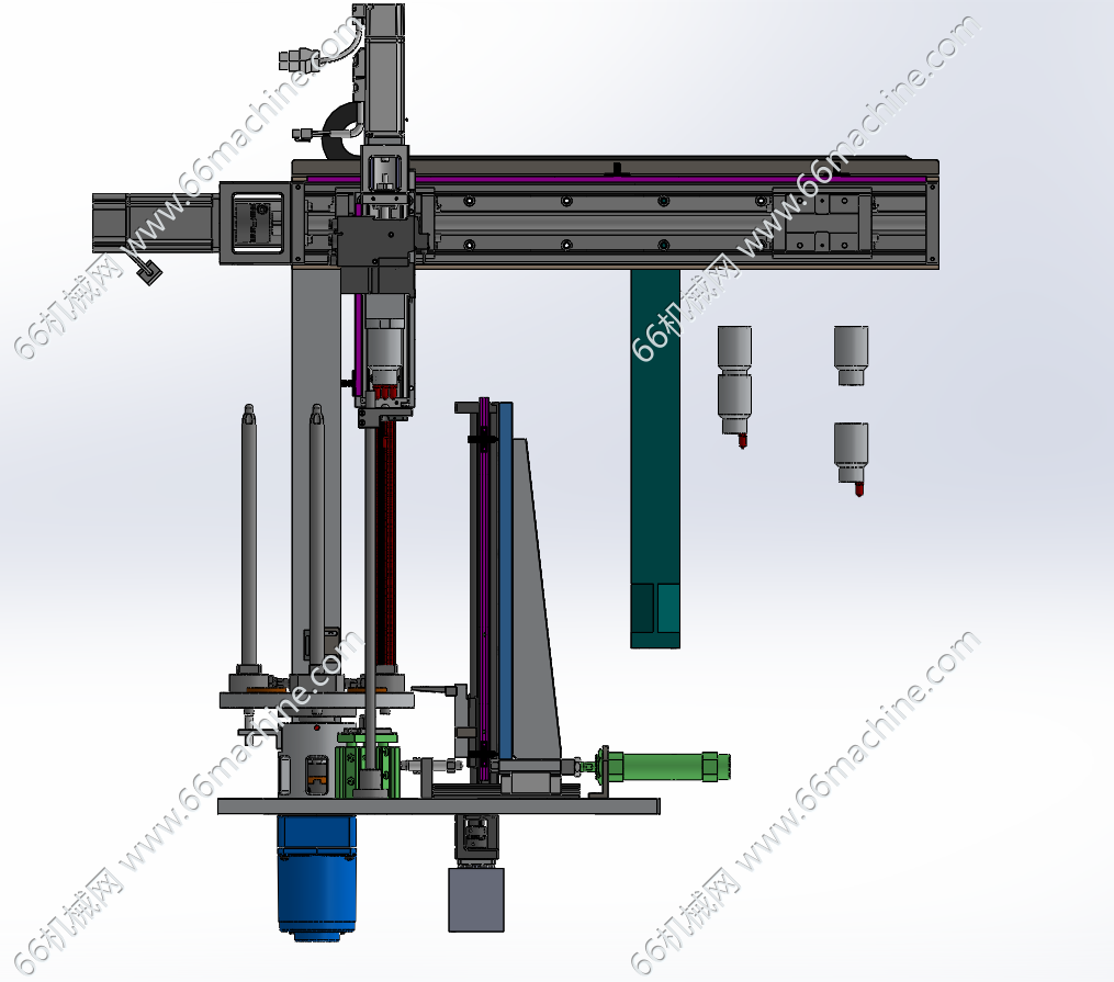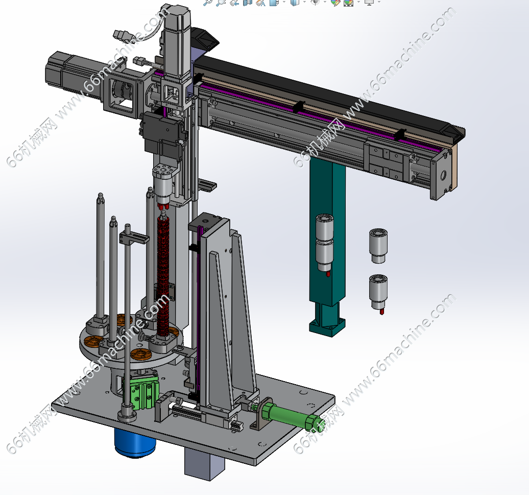 本模型为二轴双工位气动夹持机构,XY轴均设有伺服丝杠直线模组,Y轴增设有2组长行程气缸,气缸末端设有圆柱夹持机构及矩形夹持机构,夹持机构均为气动驱动,可供大家参考!