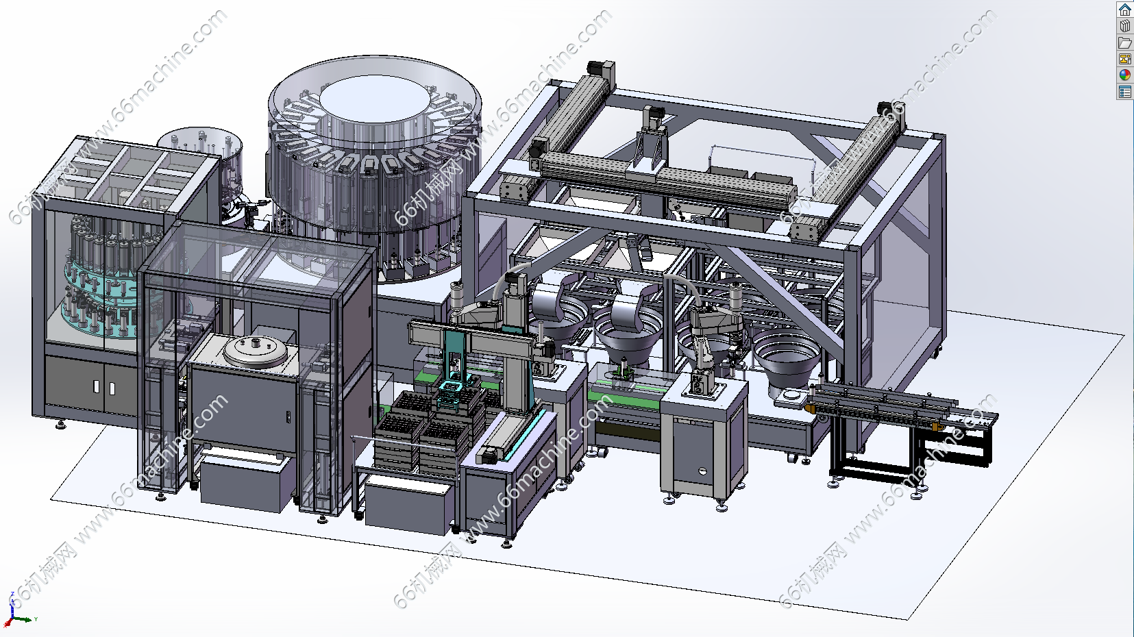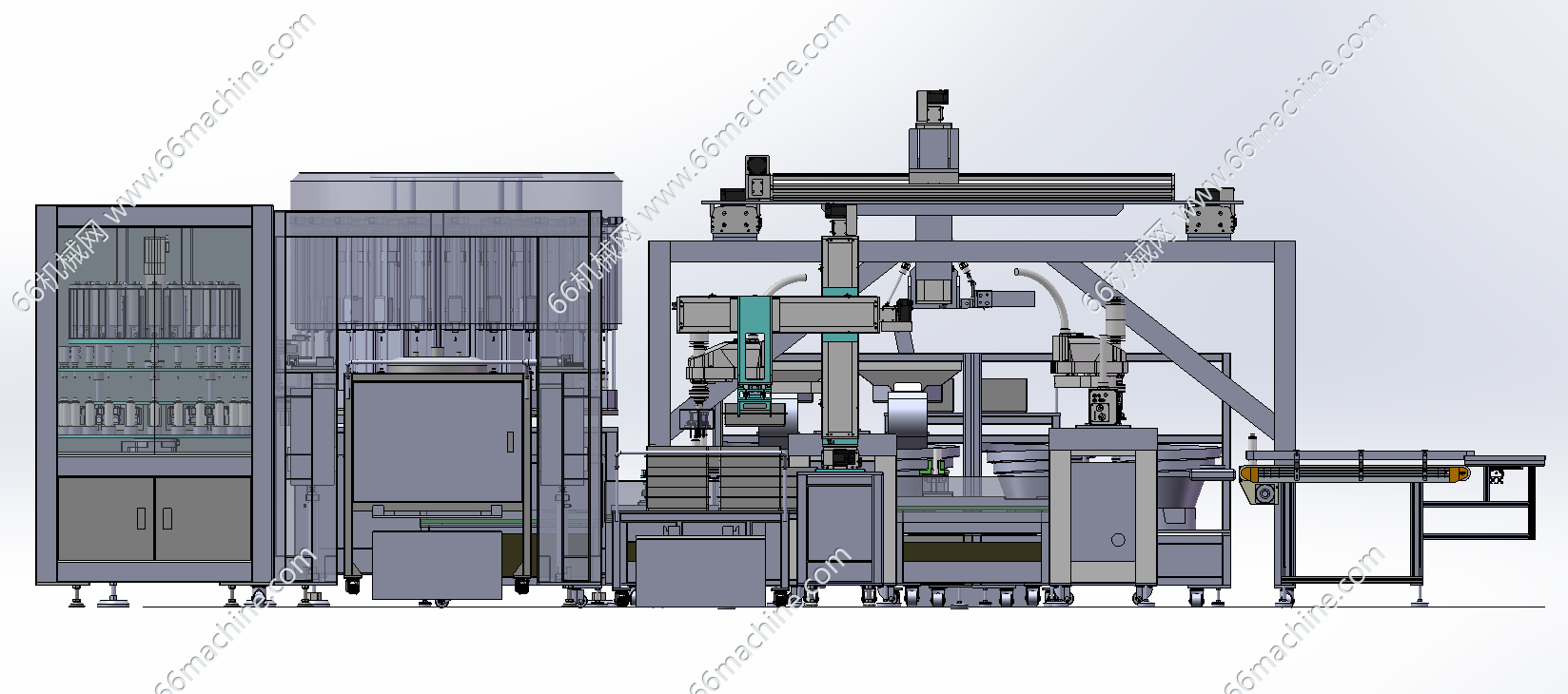 本模型为瓶体自动清洗、罐装、旋盖设备【化妆品罐装线】,主要由超声波在线清洗机、旋转搅拌机、灌装设备、瓶盖供料及机器人拧紧设备组成,本设备通用性强,可用于各类瓶体的自动清洗、罐装、旋盖作业,仅供大家参考!