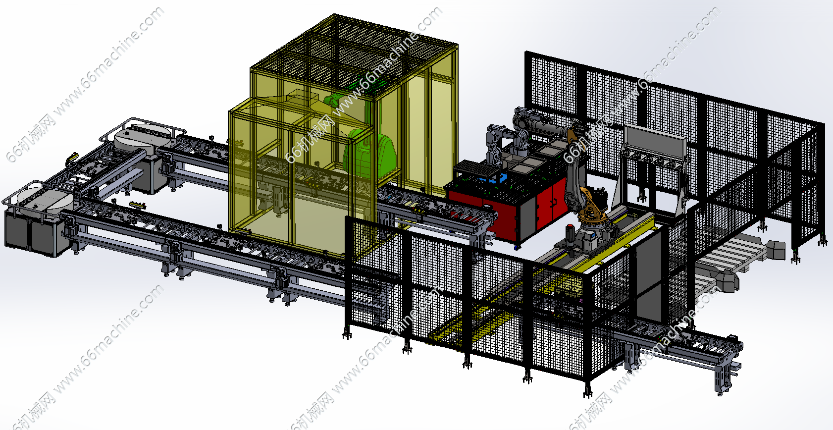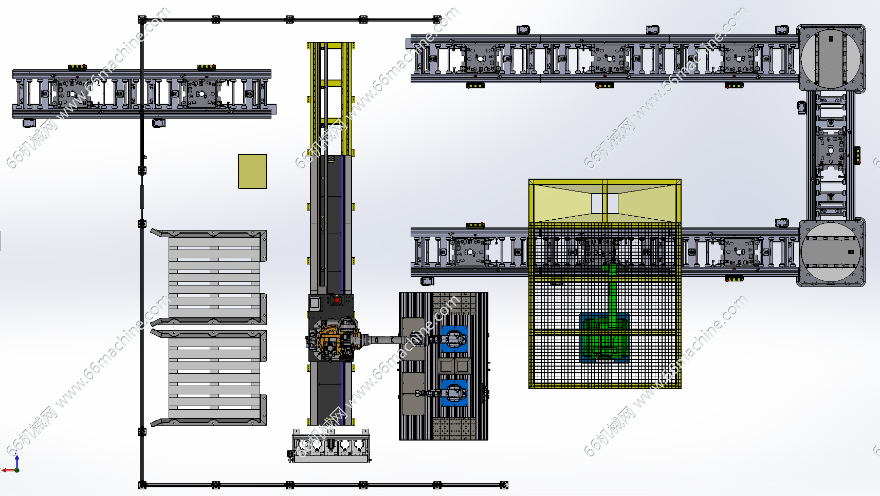 本模型为基于机器人的自动化喷涂线,主要由滚筒输送机、机器人摆盘机、地轨机器人下料、机器人喷涂室等组成,适用于托盘上工件的自动化喷漆及下料作业,x-t通用格式,欢迎参考!