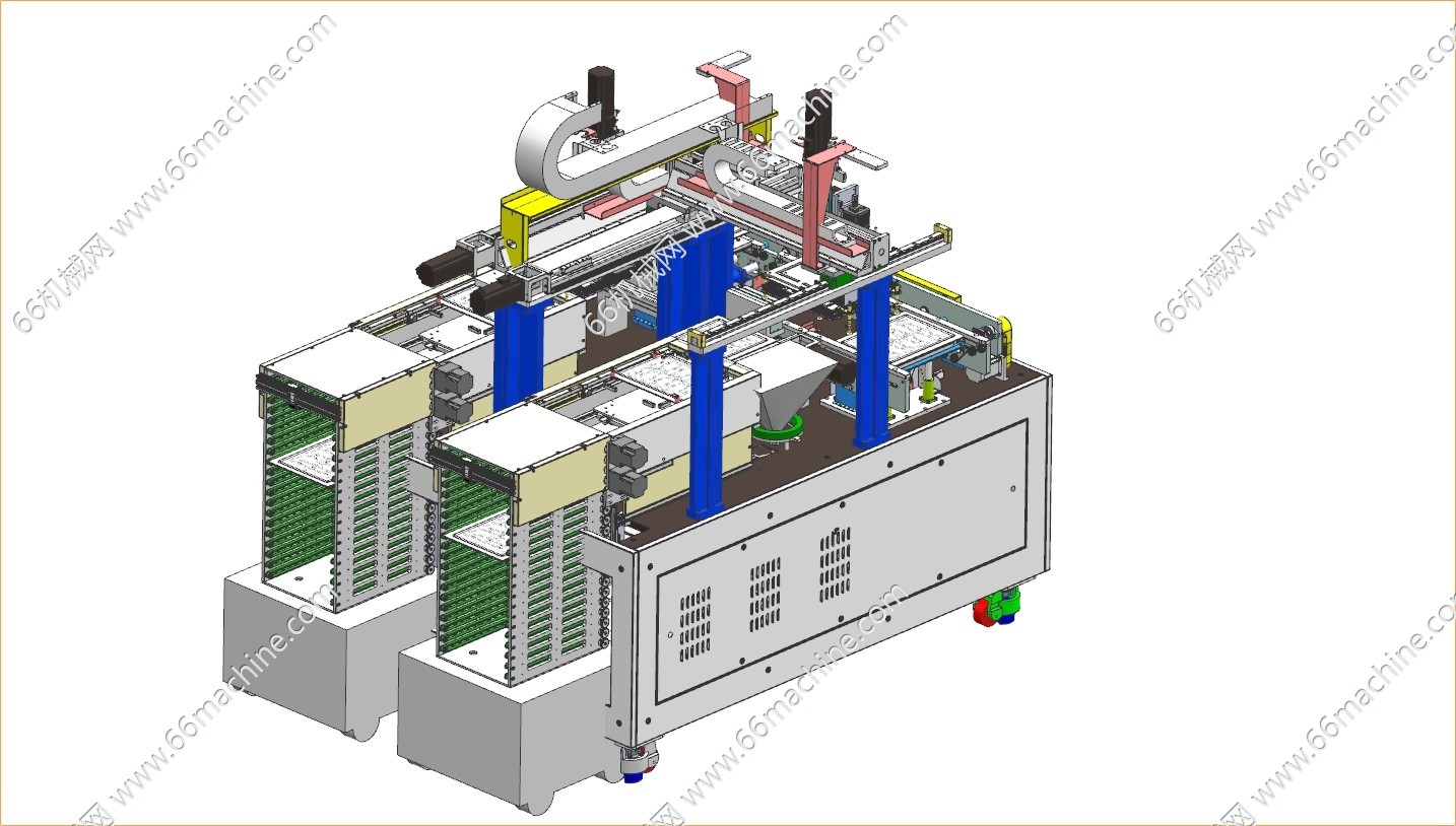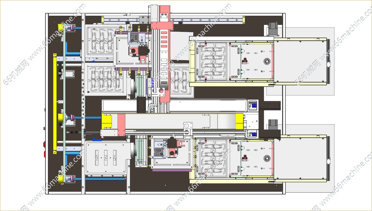 实现Flex的载具更换 要点:Flex放入新载具并翻转180° 新载具搬运,旧载具回收 1.控制系统:研华工业控制PC机 15寸LCD 2.X-Y驱动系统:松下交流伺服电机 日本THK精密模组 3.X-Y重复精度:±0.05mm 4.Z、R轴驱动系统:松下伺服电机 THK精密模组 APEX精密减速机 SMC气缸 5.R轴转角范围:0~360° 6.进气气压: 0.5MPa~0.7Mpa 7.电源:220V 50HZ 8.UPH 约为280盘