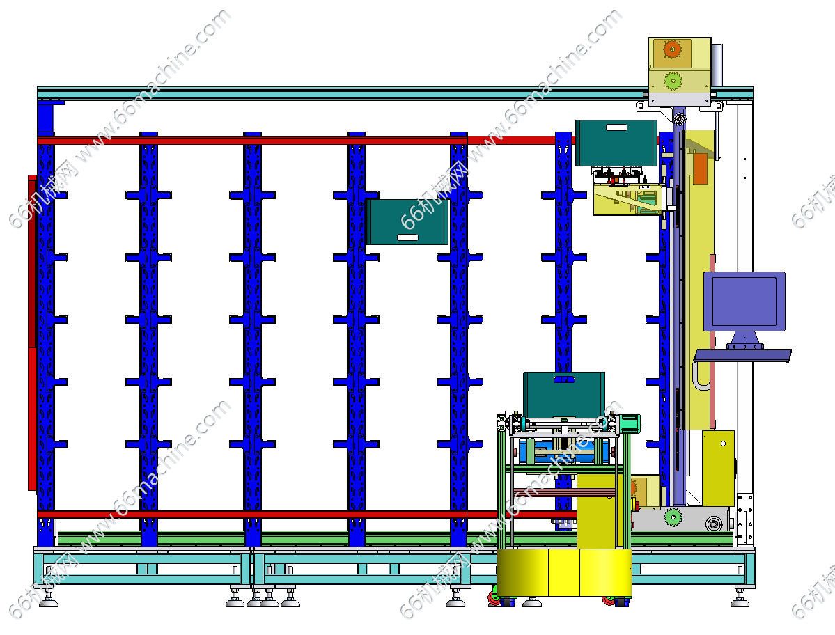 本模型为某企业智能搬运立体仓库物流系统(自动化立体仓库),可实现仓库高层合理化,存取自动化,操作简便化;实现物料自动化仓储管理,以及生产上下料,极大提高设计效率,自动化立体仓库的主体由货架,巷道式堆垛起重机、入出库工作台和自动运进出及操作控制系统组成。