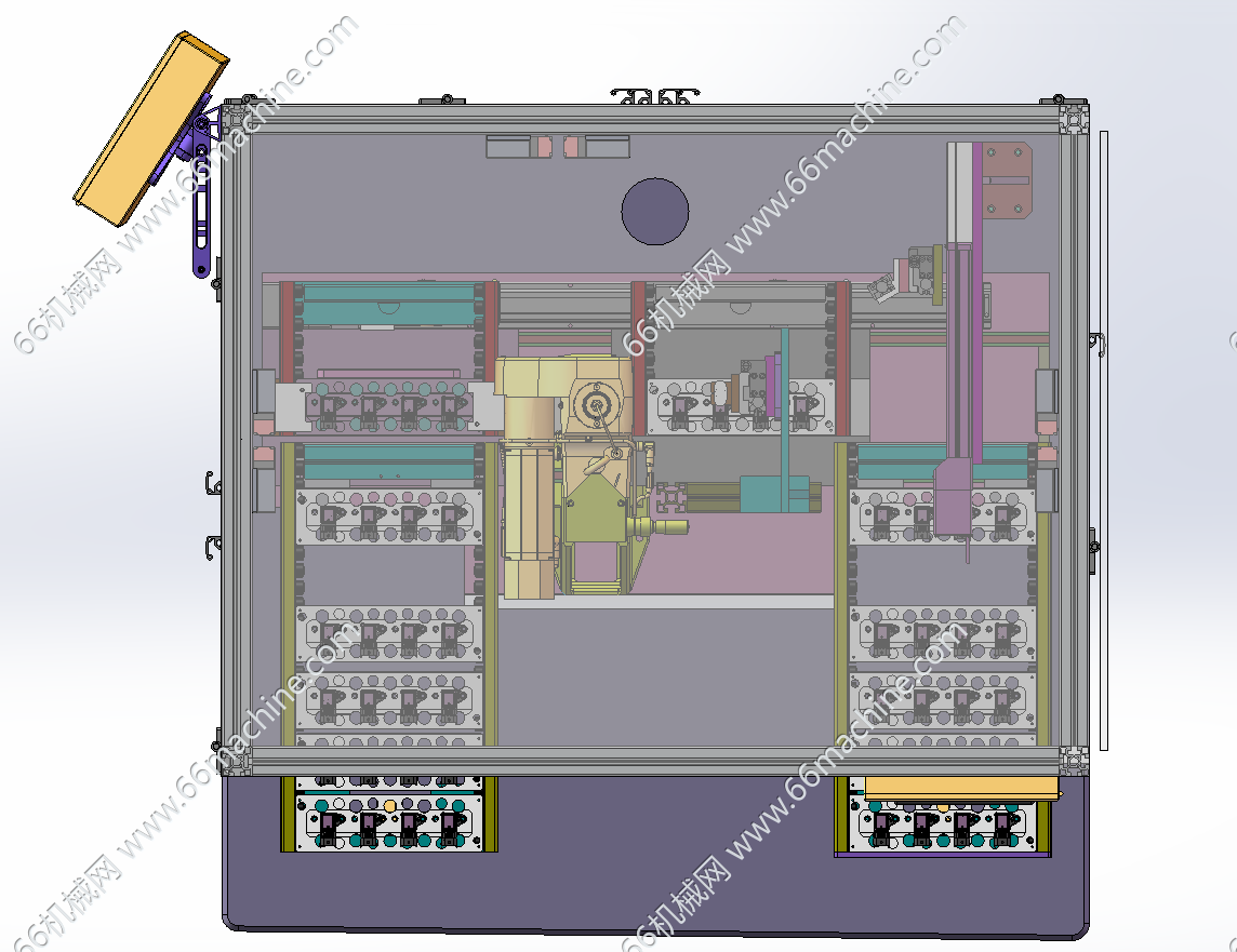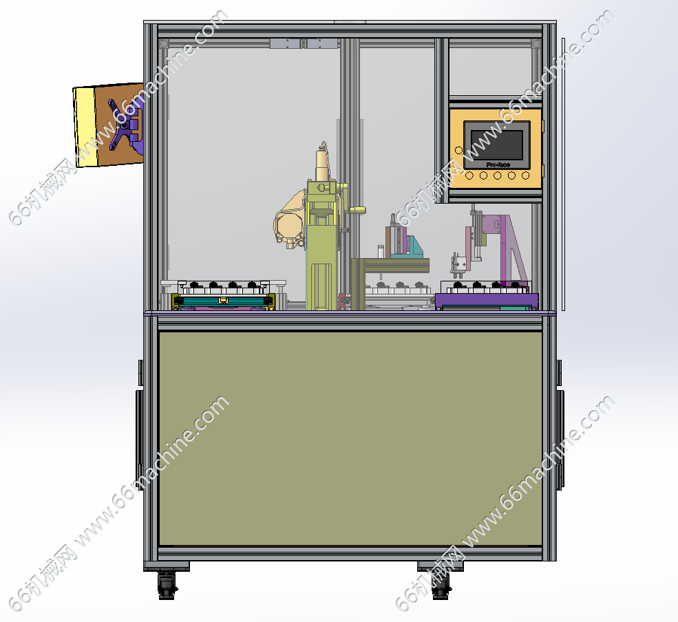 本模型为某企业插头点胶机,主要由机架、夹取搬运模组、点胶模组、保压机构、进料线/出料线、线束插头定位治具及移送输送机构等组成,用于线束插头预装后的内部点胶并进行保压作业,本设备集自动上下料、点胶及保压于一体,自动化程度高,欢迎参考!