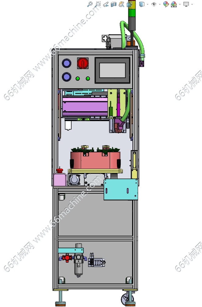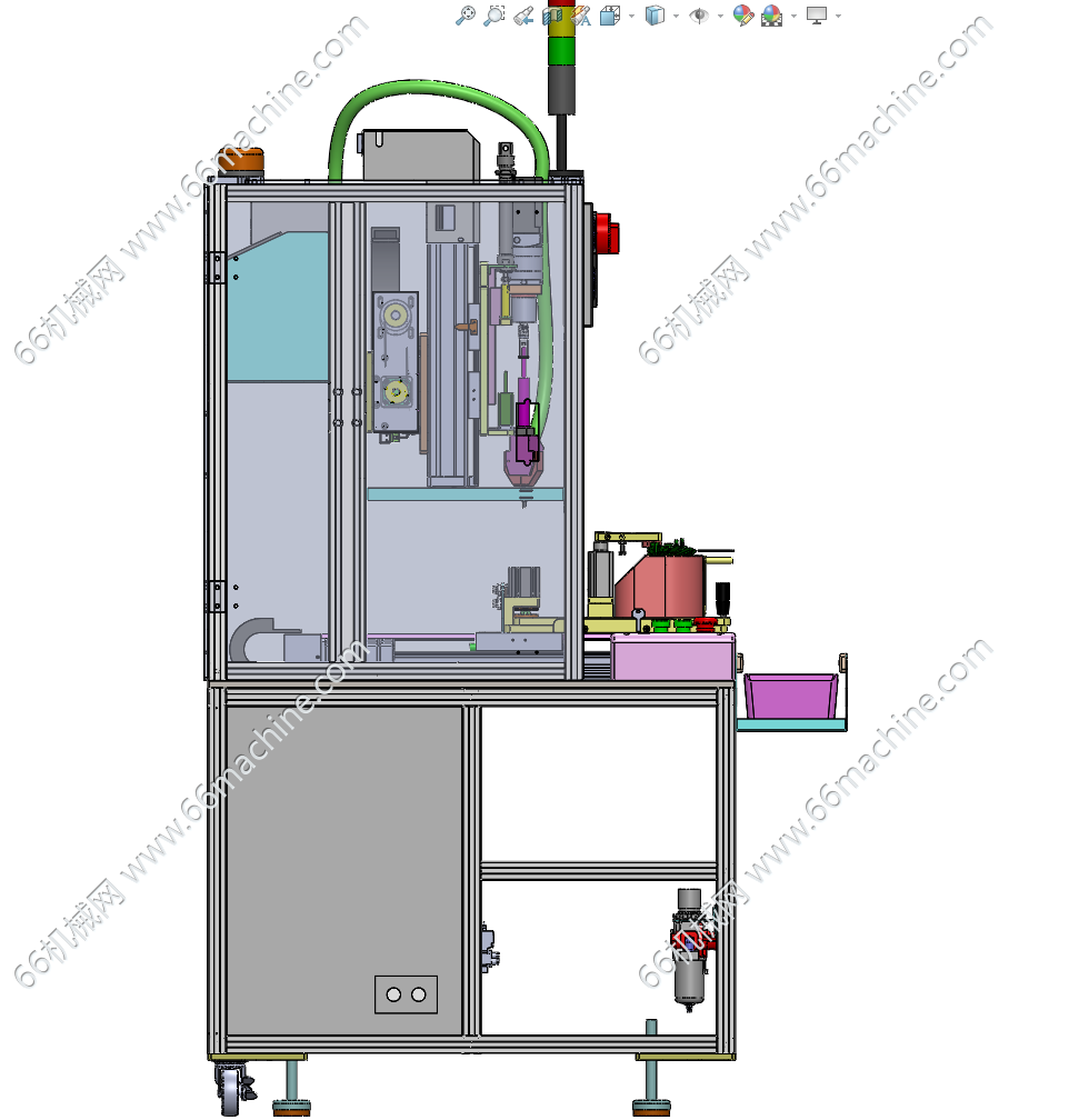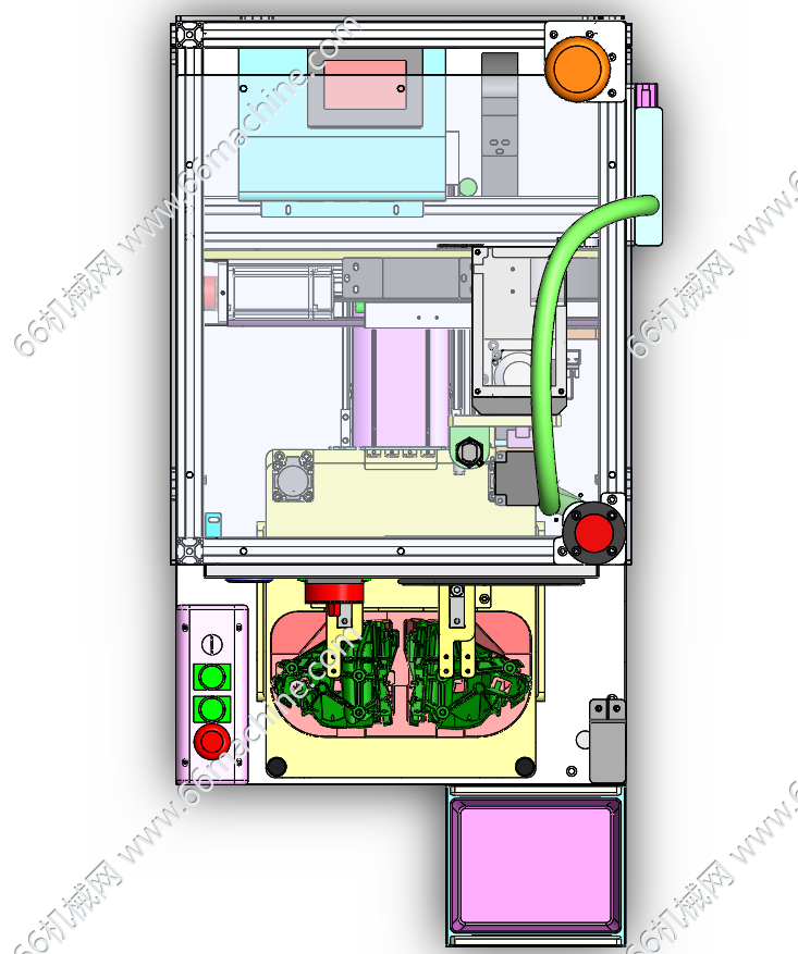 本模型为某企业三轴锁螺丝机,搭载PLC +触摸屏控制系统,集成XYZ三轴运动机构、螺丝自动供料系统与专用产品治具,可实现多规格螺丝的精准定位、自动锁付及漏锁、浮锁等异常检测,适用于消费电子、家电等行业的小型组件螺丝装配作业,兼具结构紧凑、操作便捷与安全防护完善的特点,能显著提升装配效率与一致性。
