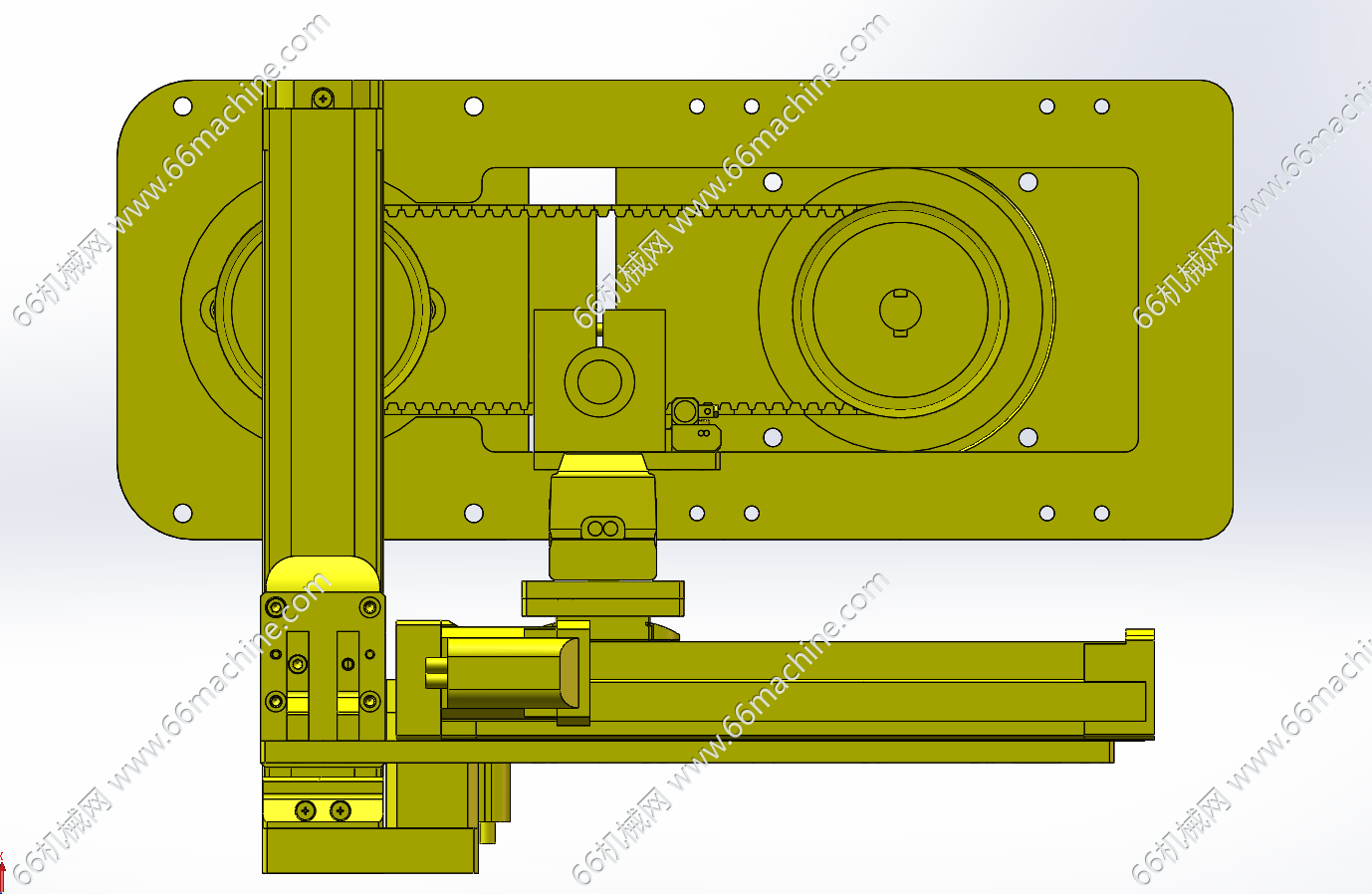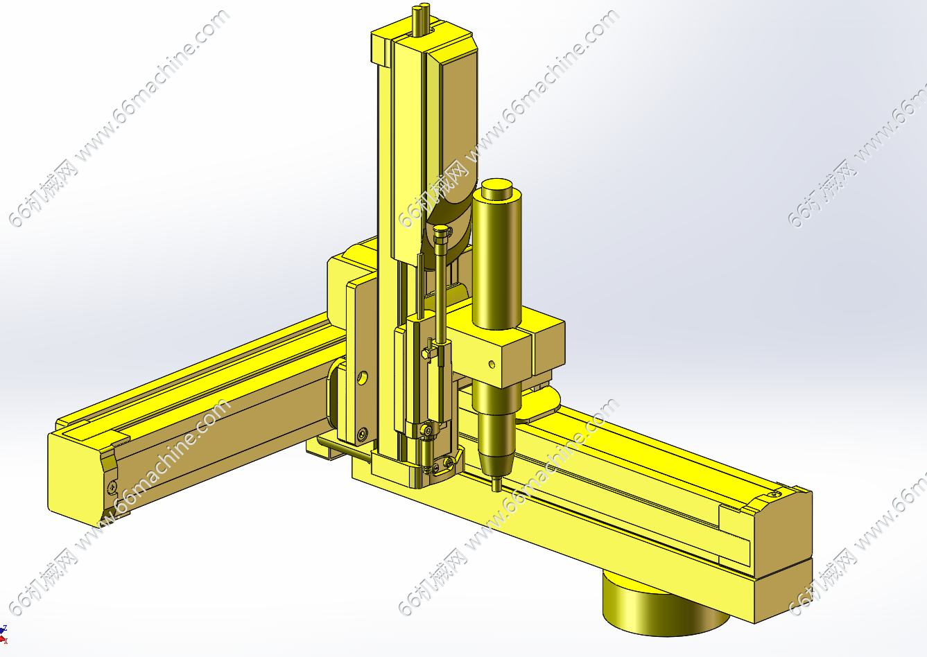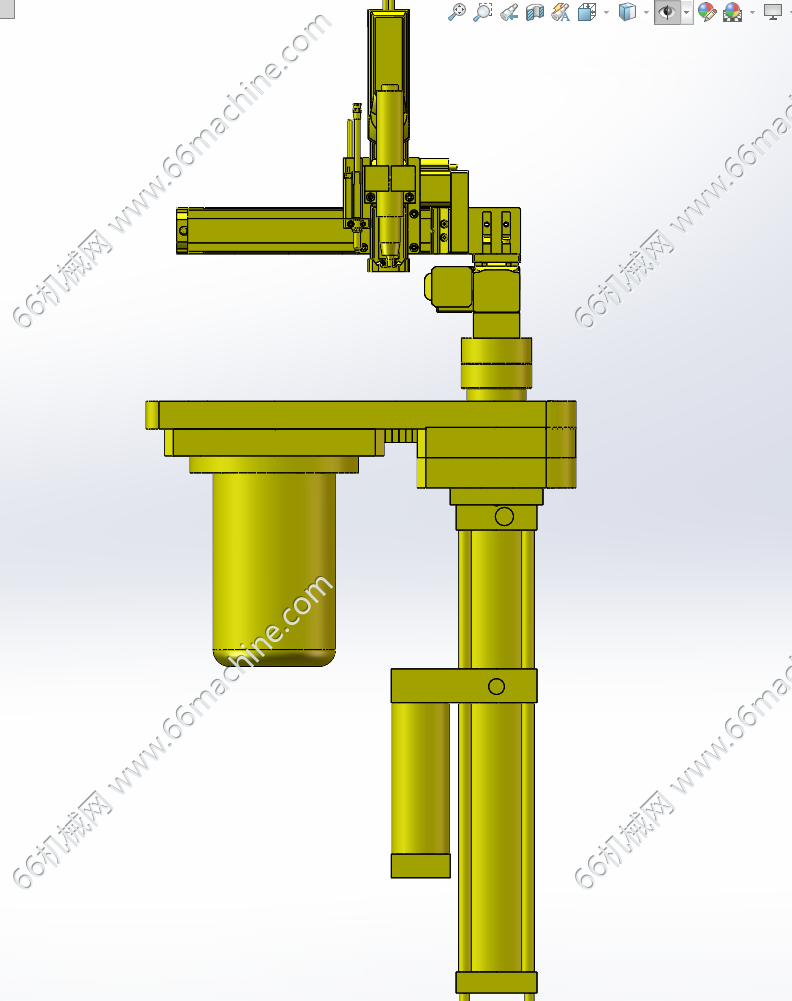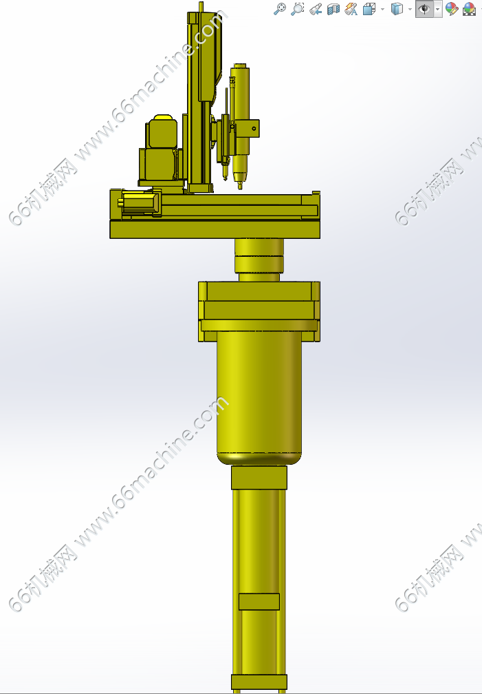本模型为带升降的四轴螺丝锁付机构,三轴螺丝锁付模组的三轴均由伺服丝杠模组实现直线往复动作,第四轴为旋转轴(R轴),由电机进过带传动驱动旋转,升降采用气缸,欢迎参考!