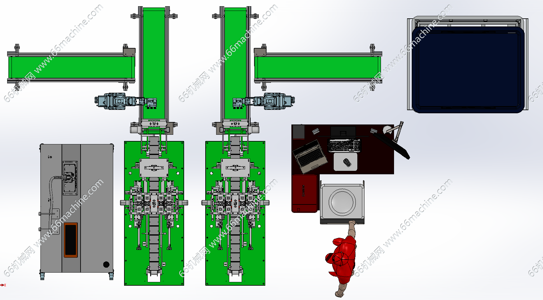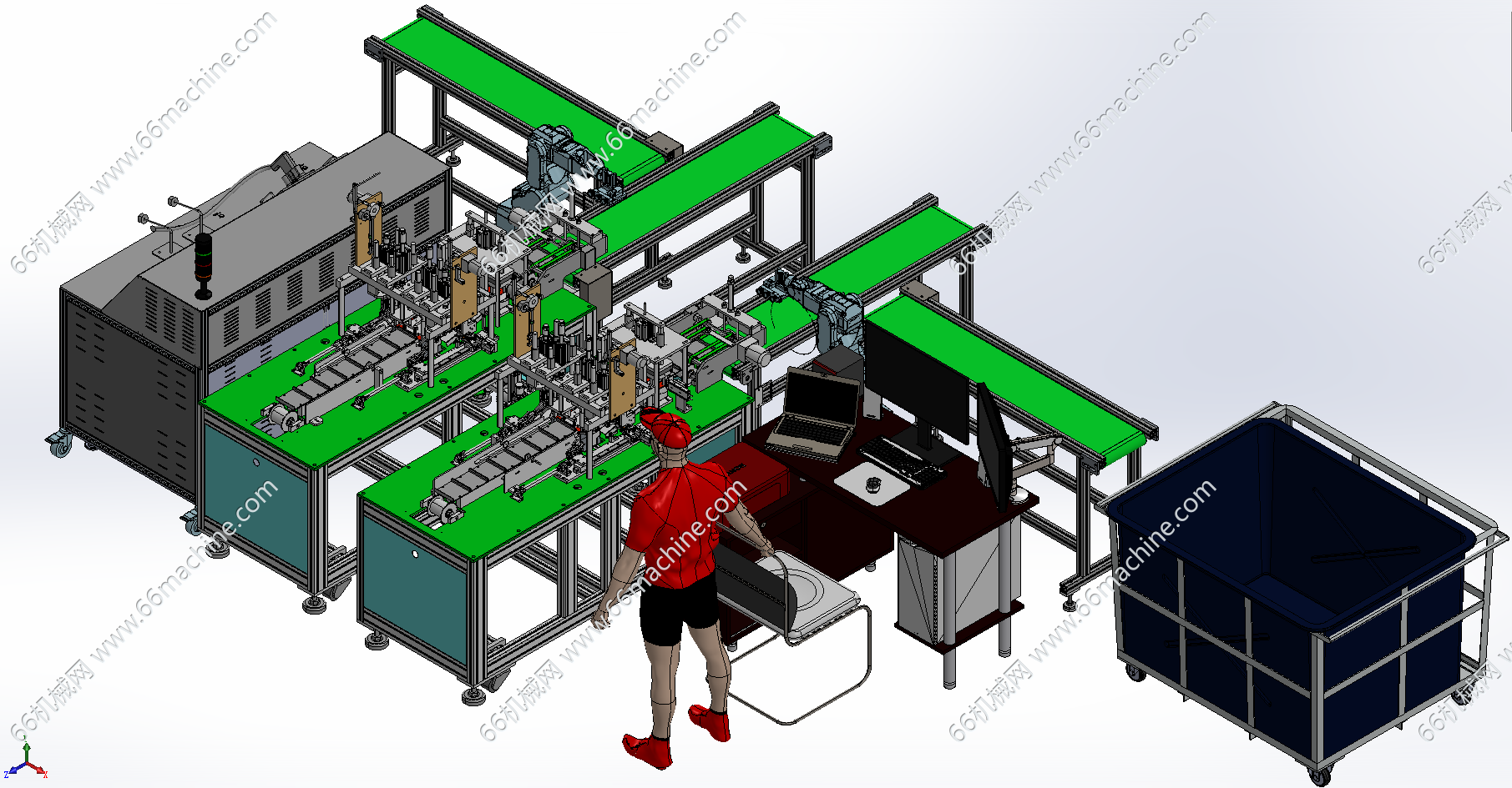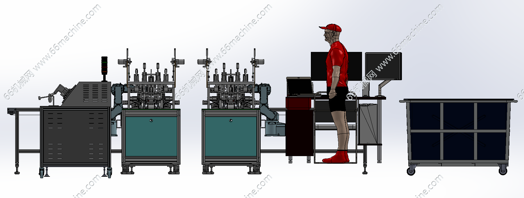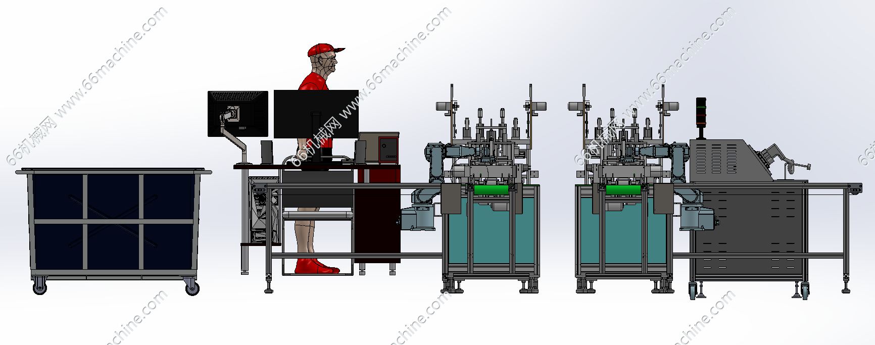本生产线用于电子元件的自动化组装。多工位的组装设备对电子元件进行精密组装,工业机器人协助完成物料搬运与工序衔接,工作人员在操作工位监控生产流程,输送线则负责元件在各工序间的流转,实现电子元件从零件到半成品的自动化组装,提高组装精度与效率。