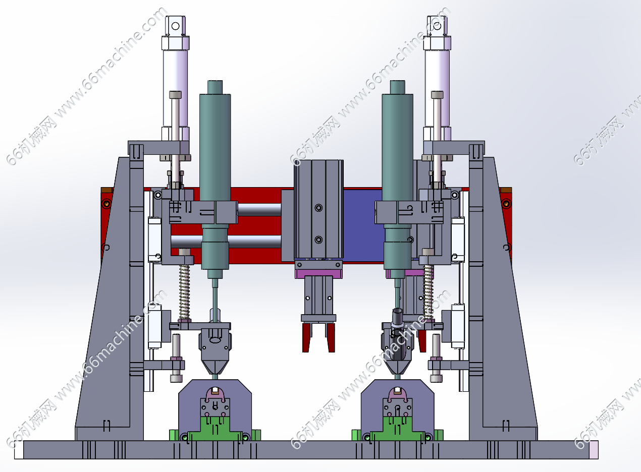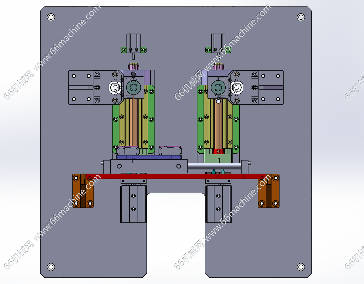 本模型为某企业双工位挂勾/挂钩(勾座)打螺丝机,主要由2组螺丝锁付枪、挂勾搬运机构及勾座定位模组组成,用于将挂勾锁付在勾座上,一个勾座上可锁付多个挂勾,可供大家参考!