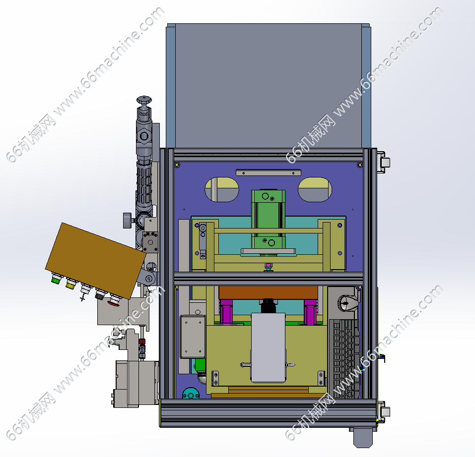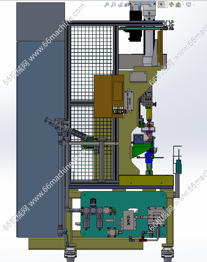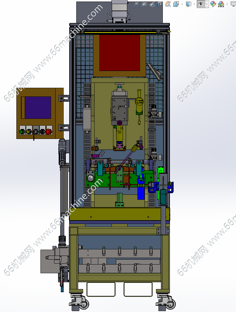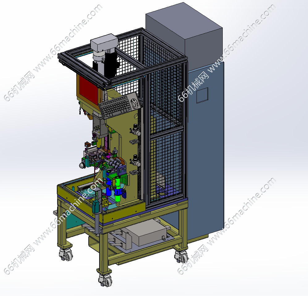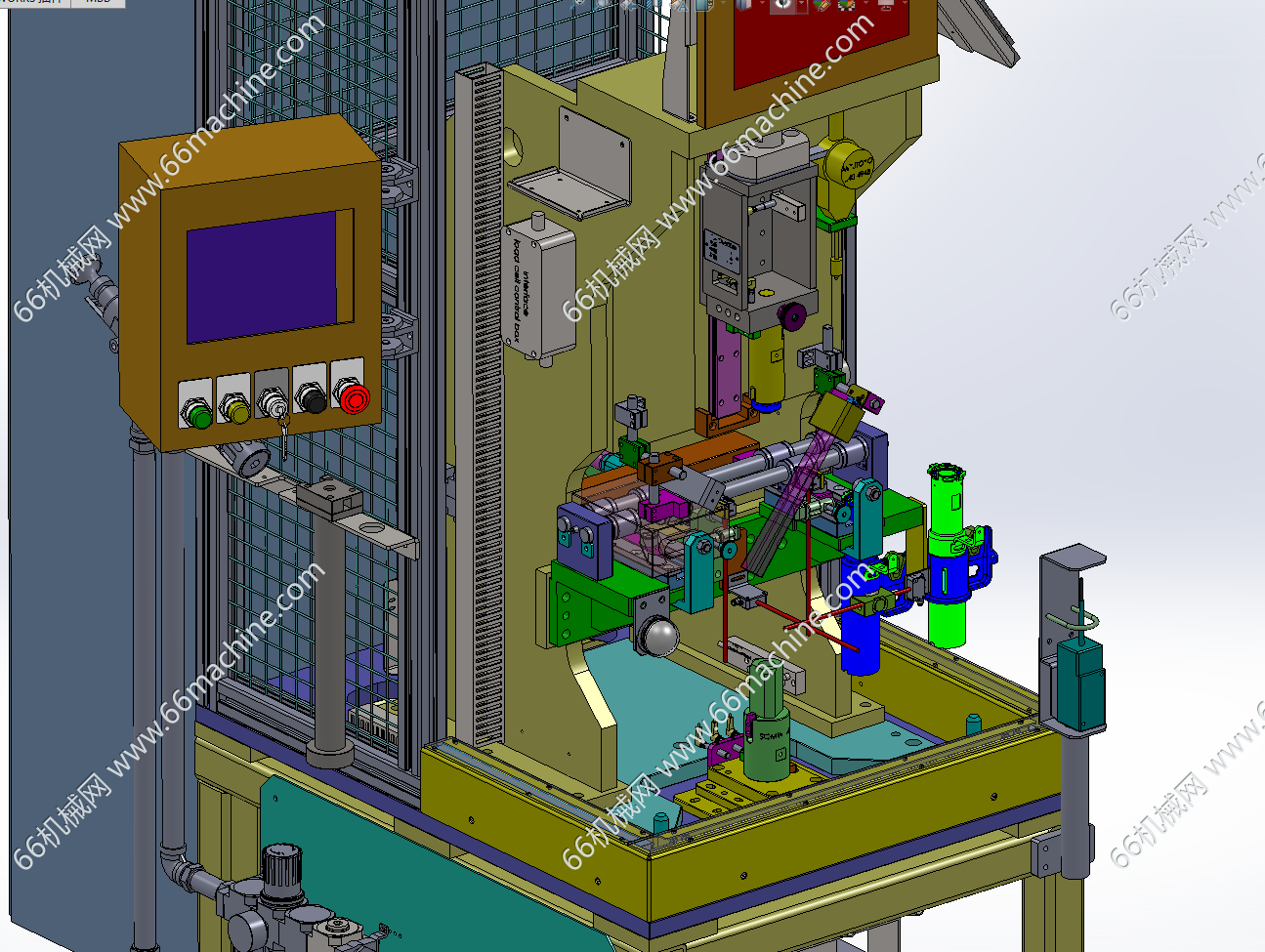 本模型为某企业转向器轴承压装及护管翻边设备,该设备大压力30KN,实现设定压力压装,压装力检测精度为千分之一(注:在≤3000N时精度不低于10%)。非常不错的机械自动化结构,值得参考借鉴。