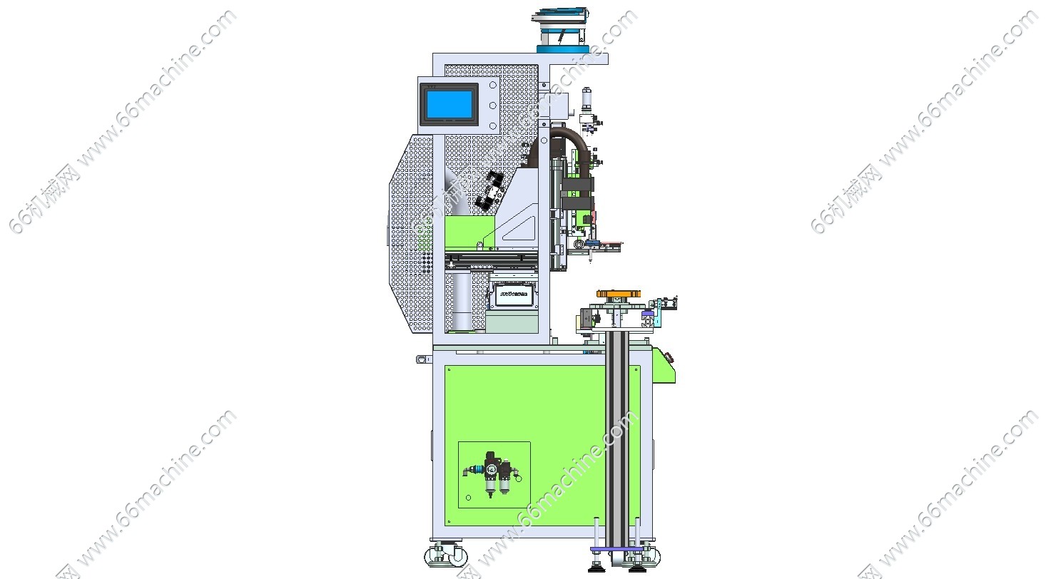 本设备为自动压钛螺母机,主要针对塑胶按键,手机后壳,塑胶笔记本后壳等需要埋钛螺母的产品上,机台面以及模组安装支架采用大理石结构,增加机台的刚性,保证设备的精度。