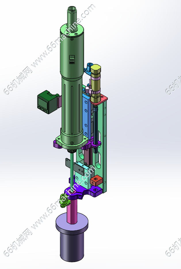 本模型为螺母锁付机构,电批末端设有螺母套筒,不同规格的螺母需要更换不同的套筒;设有驱动气缸推动电批模组进行一定距离的移动。该模组可以直接套用!