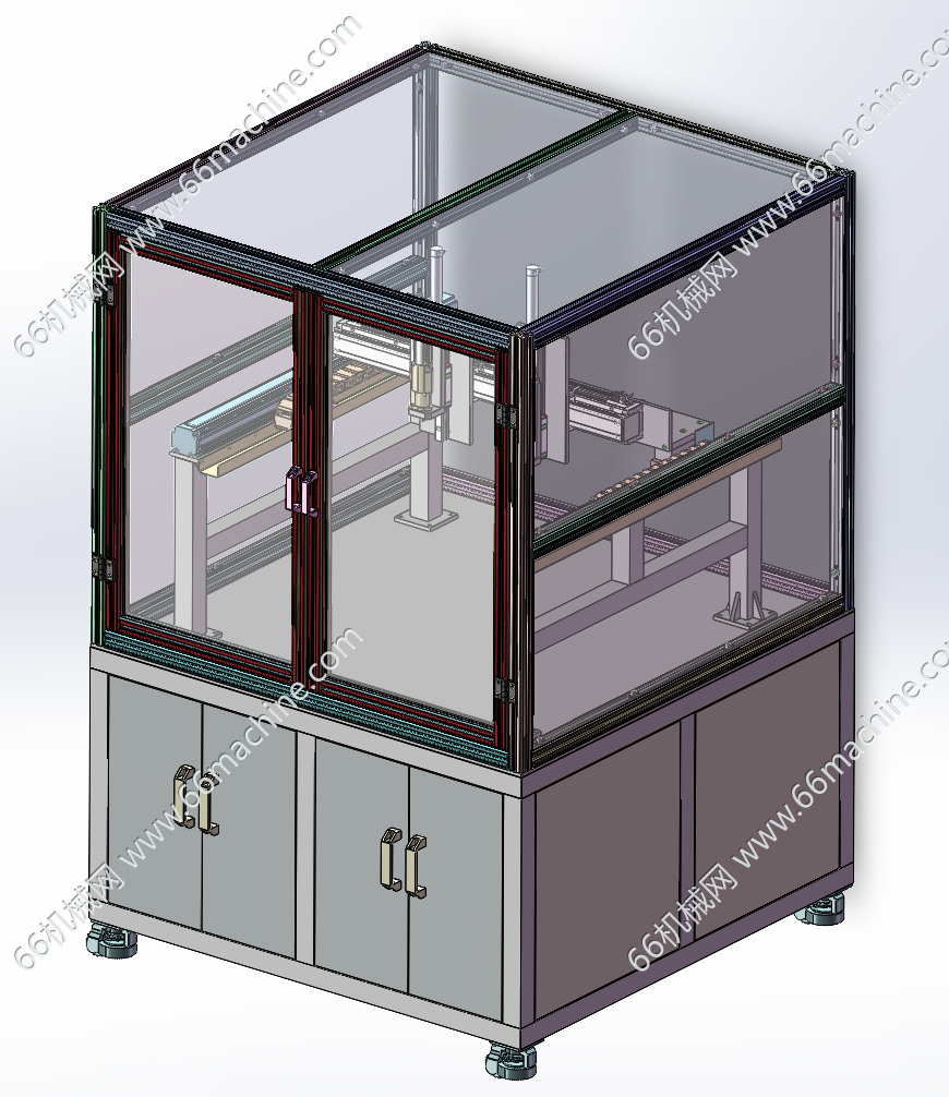本模型为龙门式三轴双头锁螺丝机,主要由下机架、机罩、三轴模组及螺丝锁付模组构成,XY轴为伺服丝杠实现往复动作,Z轴采用长行程气缸驱动,欢迎参考!