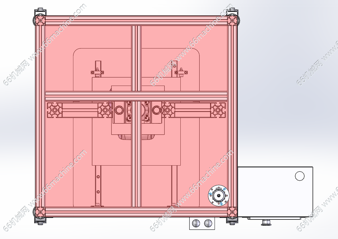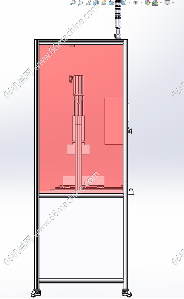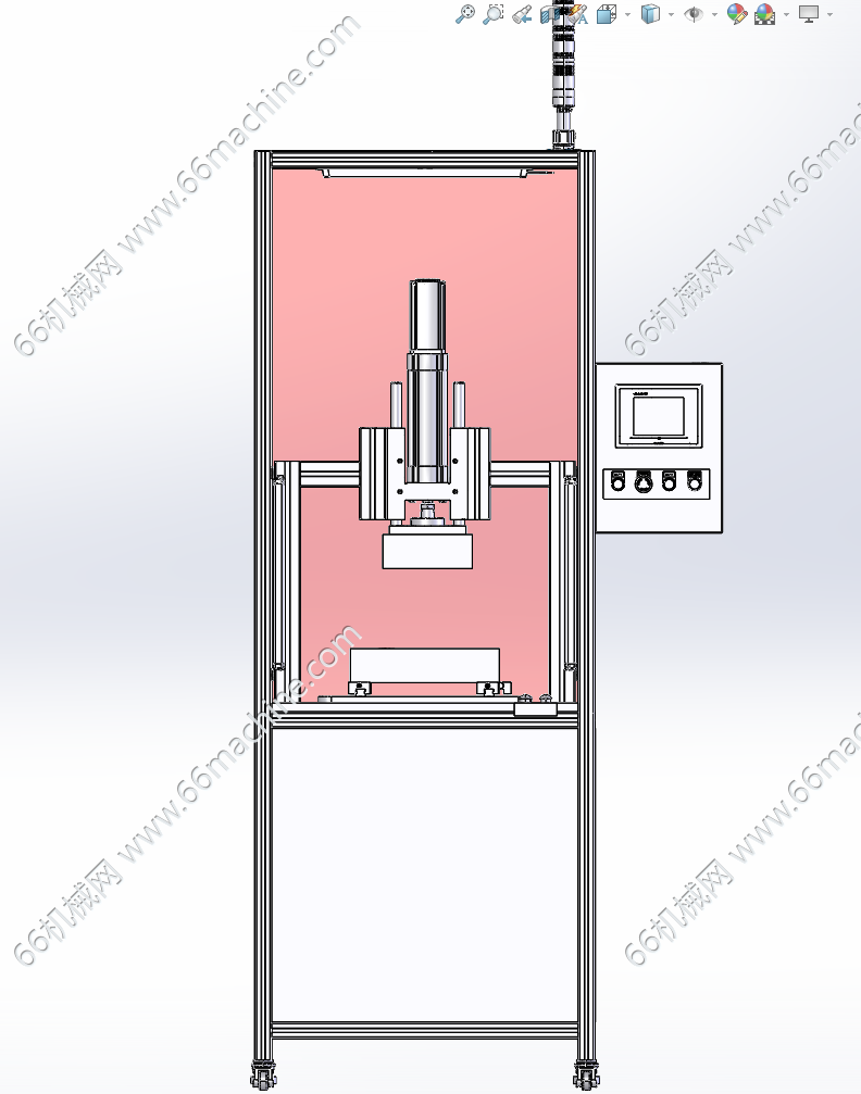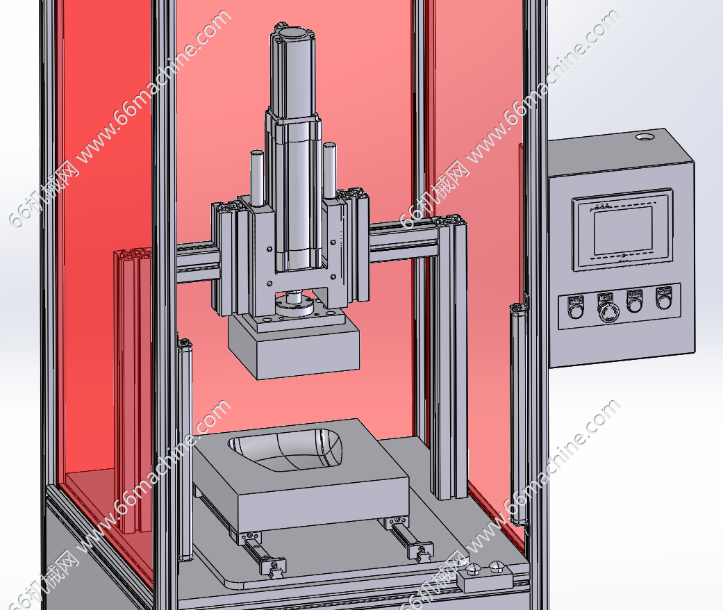 本模型为自动扣合工作站(扣压组装机),带定位胎具,主体结构为铝型材,上、下胎具进行压合,对产品进行扣合组装,压紧机构驱动为伺服电缸,可以控制压合力,防止压合过度,使产品破损。