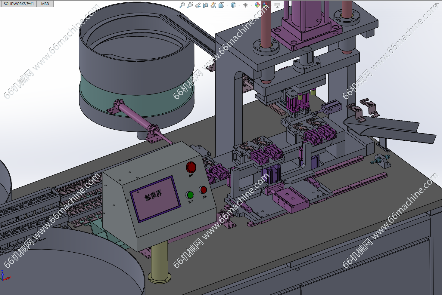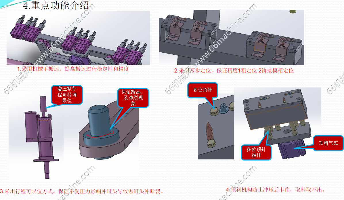 本设备适用铰链座自动组装铆接工序。采用双工位进料,人机界面PLC控制, 自动送料,自动搬运,自动铆接。设有 故障自动停机、报警提示。可根据选项自动/手动切换,设备的生产节拍不超过4秒/件(一出二)。本资料包含3D及技术方案(含兼容性风险分析),为专业人员设计,仅供大家探讨学习!