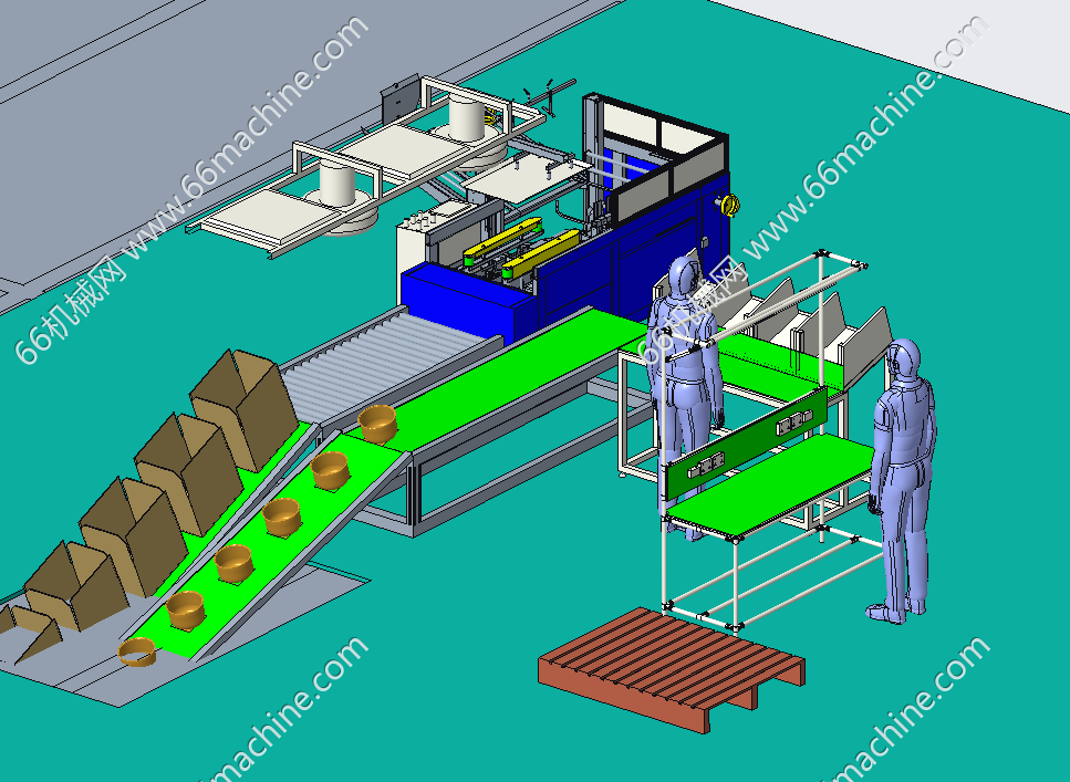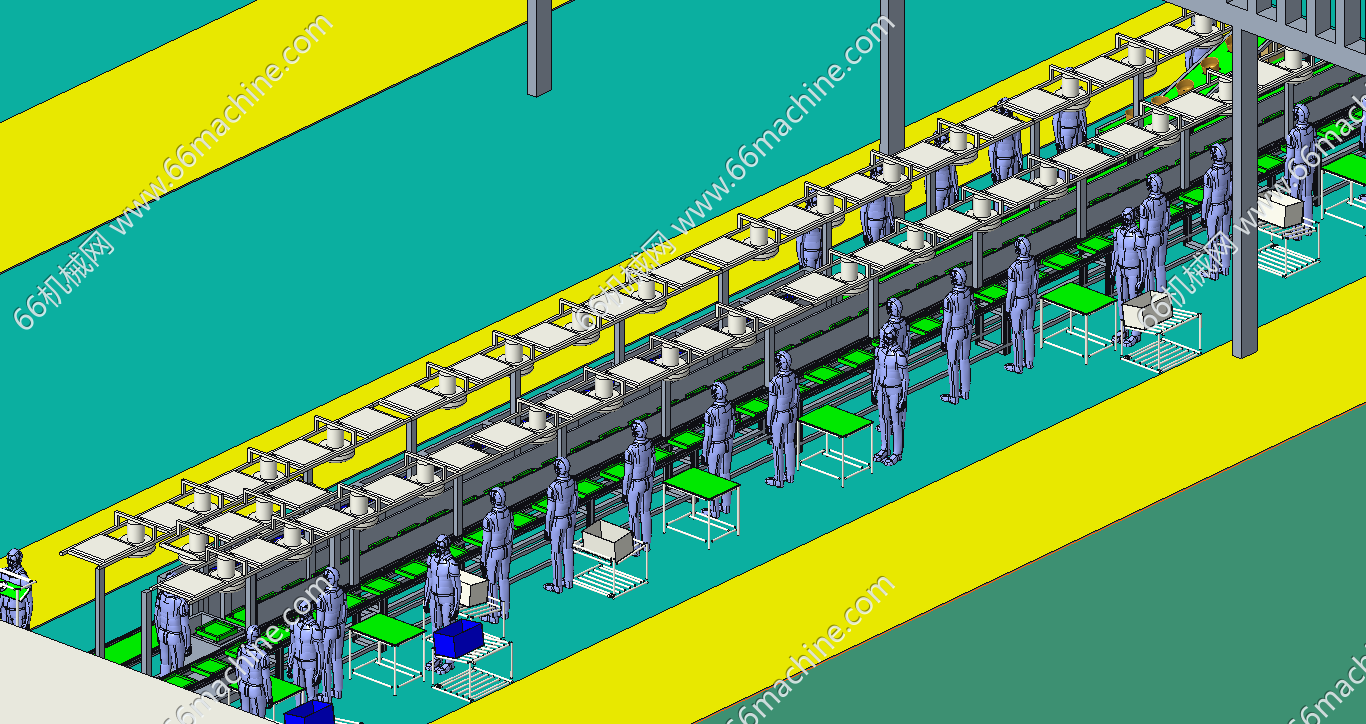 本模型为产品组装及包装线车间布局模型,主要由2层楼房、人工组装生产线、产品包装线构成,图示模拟为电饭煲组装及包装,也适用于其它产品的生产及包装作业!