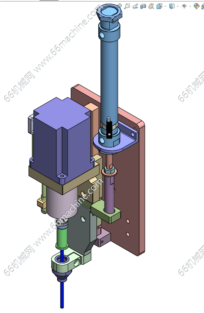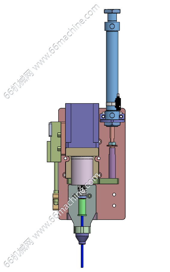 本模型为气动伸缩智能电批,以伺服智能电批为锁付核心、气动气缸为进给动力,搭配直线导向轨及位置检测模组;工作时由气缸带动电批伸缩进给,电批智能调节扭矩进行螺丝锁付,通过PLC实现气动动作与电批锁付的联动闭环控制,兼具高精度、高柔性与自动化特性,广泛应用于电子制造、自动化装配线等场景,可有效提升螺丝锁付的效率、精度。