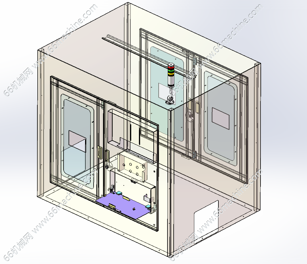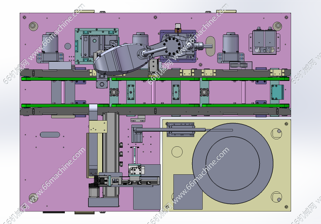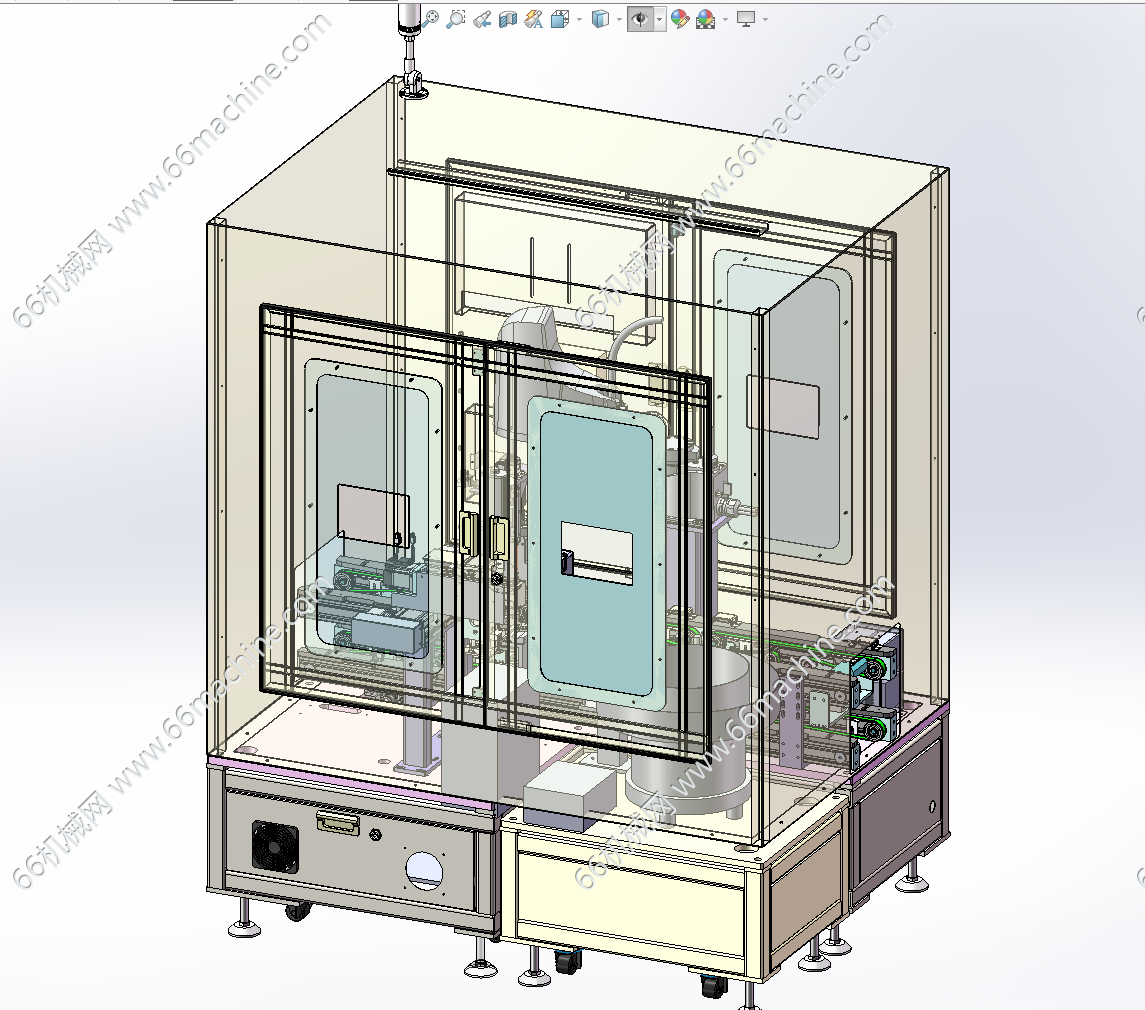本模型为基于四轴机械手的锁螺丝机,主要由下机架、机罩、载具输送线、视觉引导四轴锁螺丝机器人、振动盘供料模组、工件移栽模组等组成,主要用于载具上工件的螺丝锁付作业,通用性强,欢迎参考!