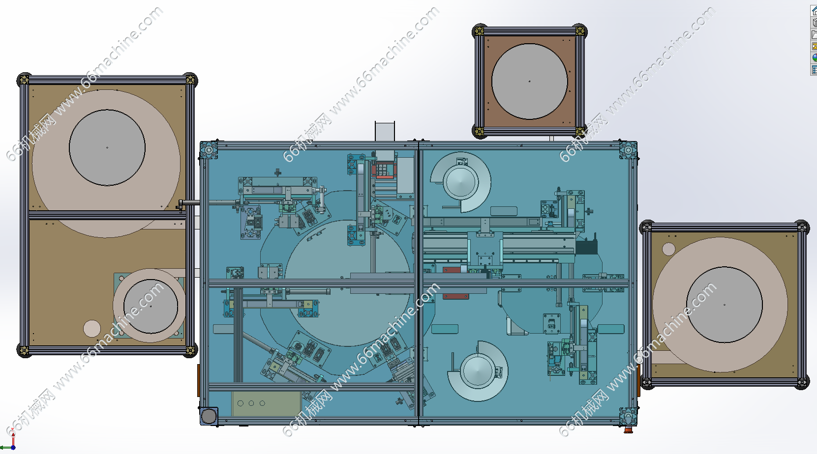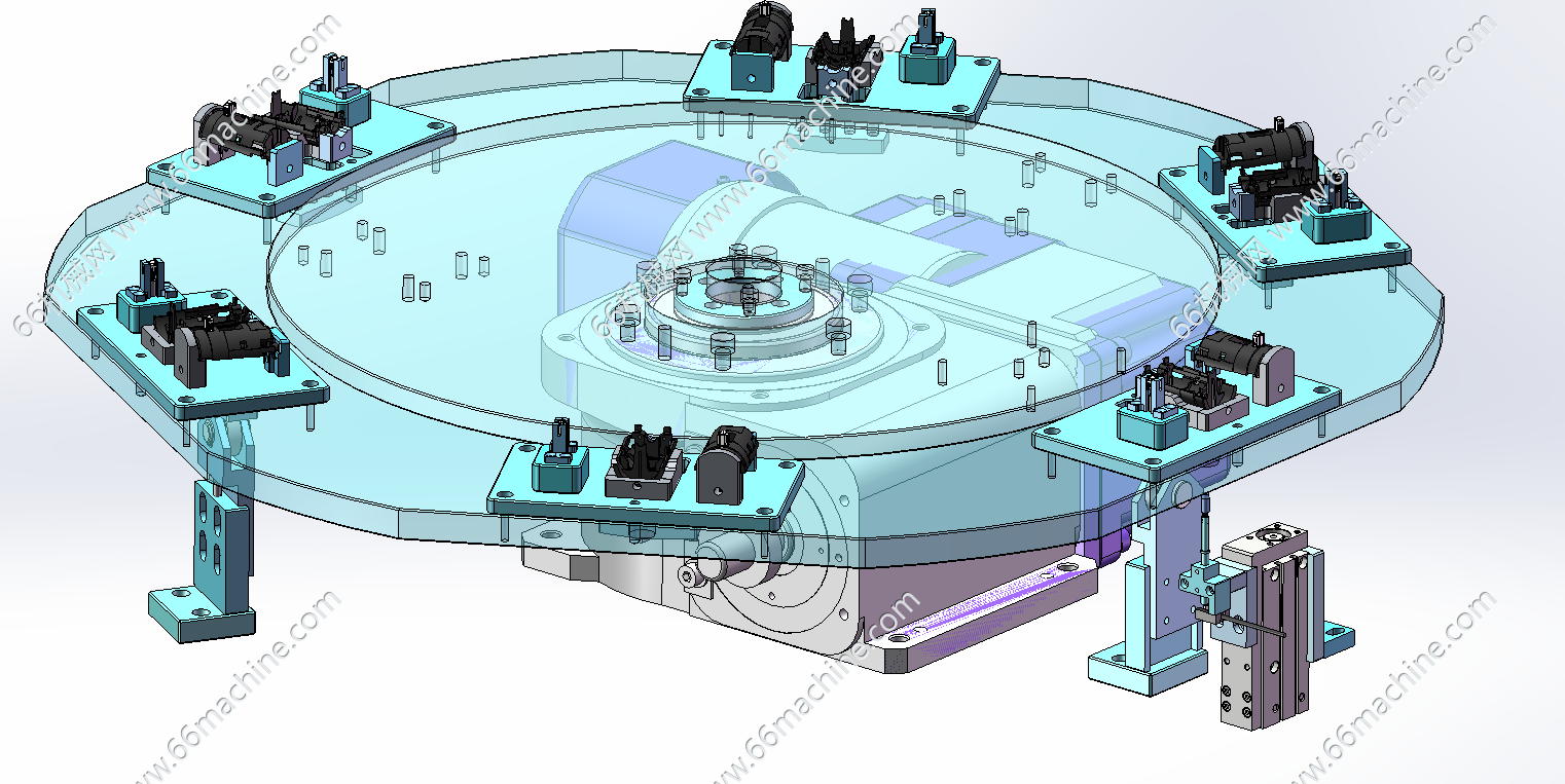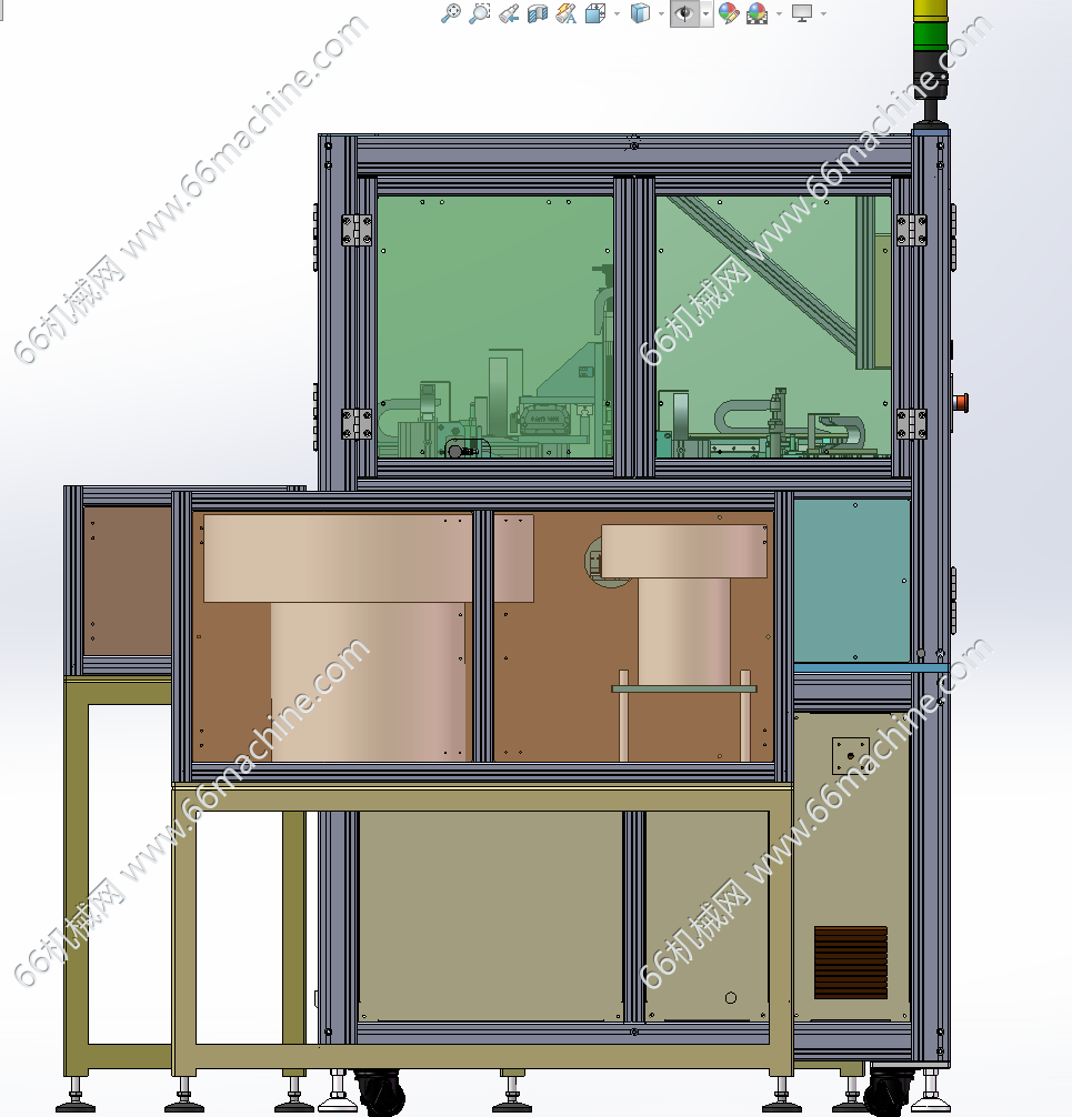 本模型为某企业电动理发器外壳开关组装机,主要由下机架、机罩、2组多工位转盘、振动盘供料模组、多组夹取移送模组、锁螺丝模组等组成,该设备用于理发器外壳、开关等部件的自动上料及组装作业,仅供大家参考!