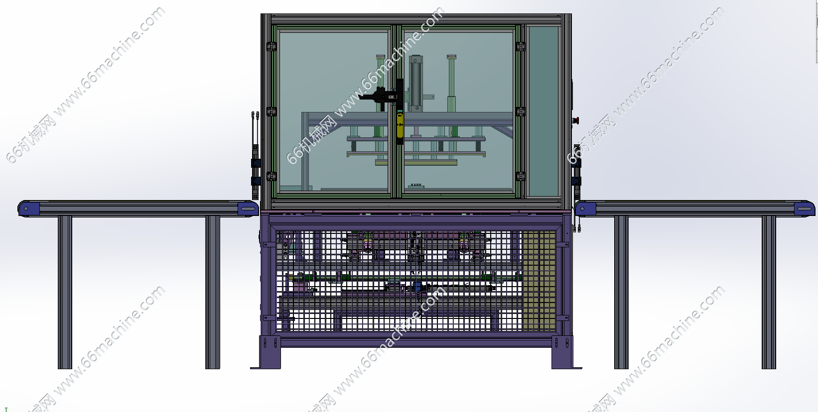 本模型为流水线上载具内产品压装设备,主要由下机架(含载具侧推居中模组)、机罩、皮带输送线、载具顶升定位双列皮带线、压装模组等组成,主要用于载具内的产品压装作业,实现在线式压装,欢迎下载参考!