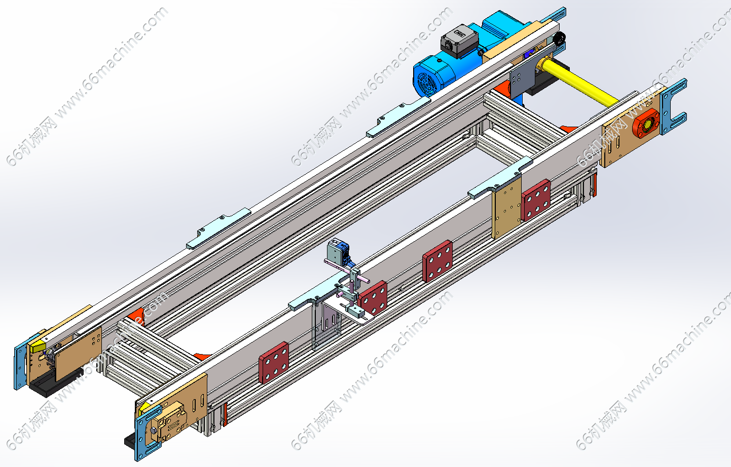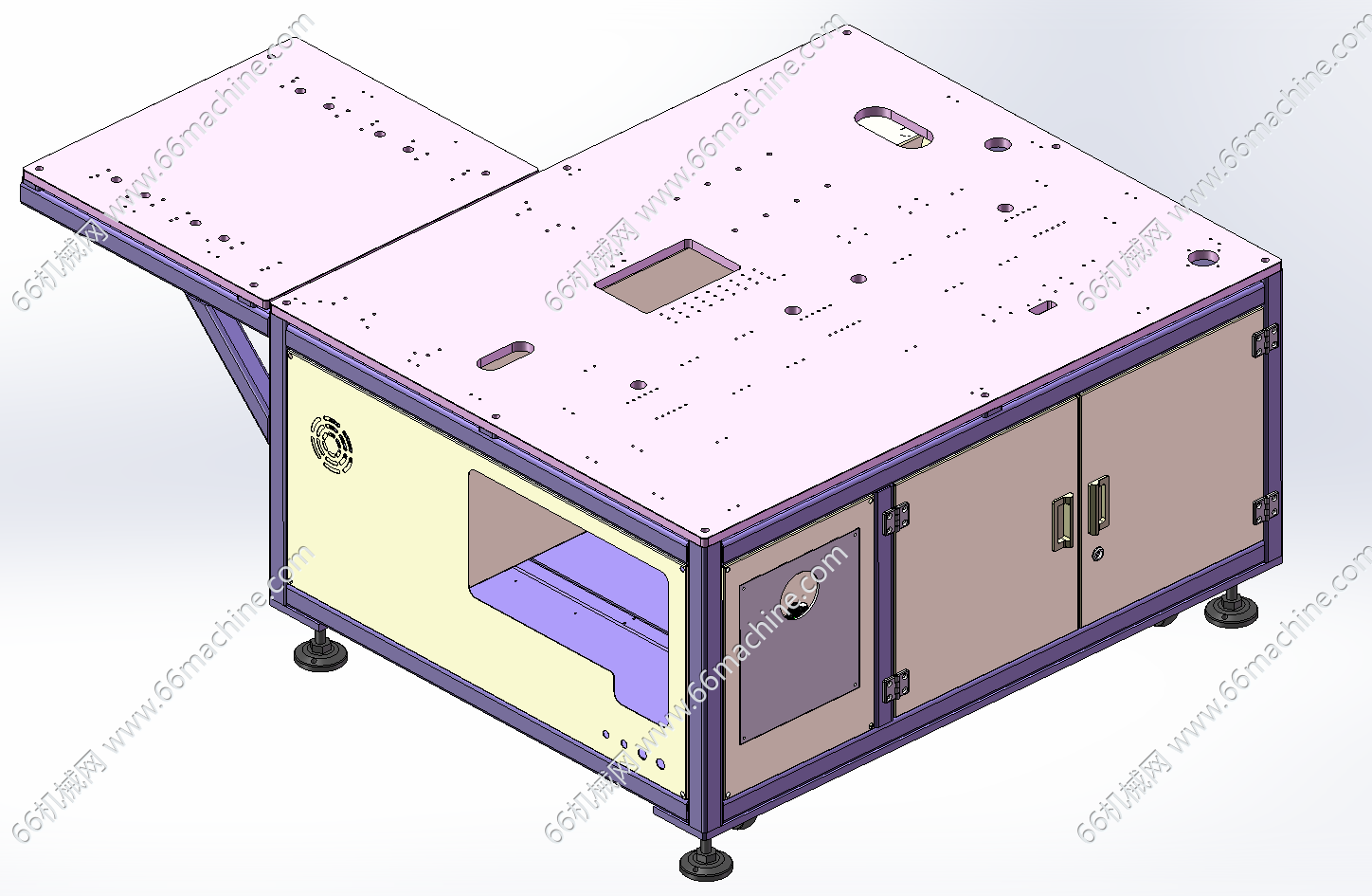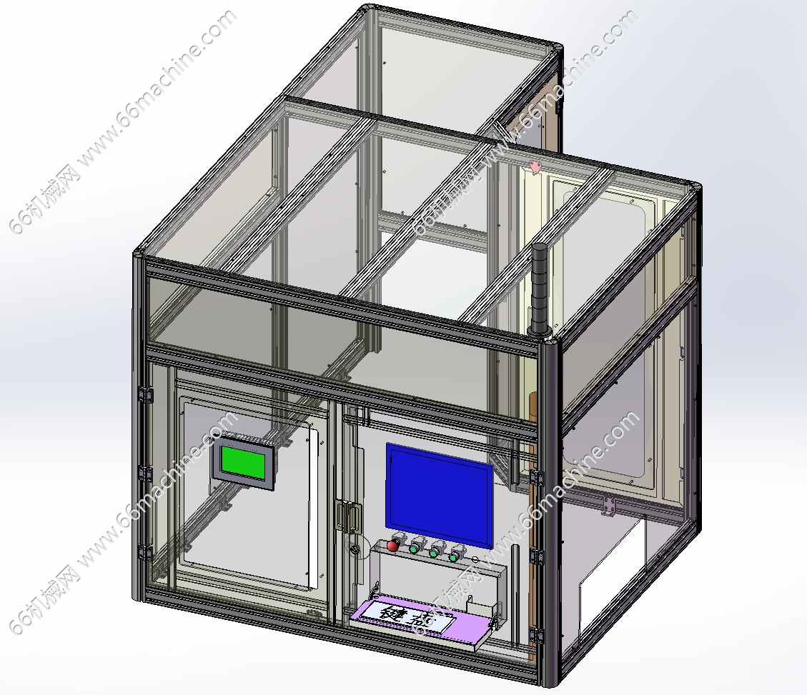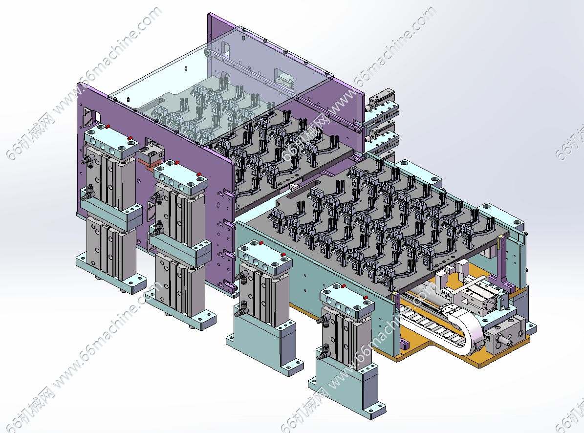 本模型为某企业线盒内连接排自动组装机,主要由下机架、机罩、六轴组装机器人、载具输送线、连接排供料机等组成,线盒放入载具内沿着输送线流入,机器人从供料机内抓取连接排装入线盒内,仅供大家参考!