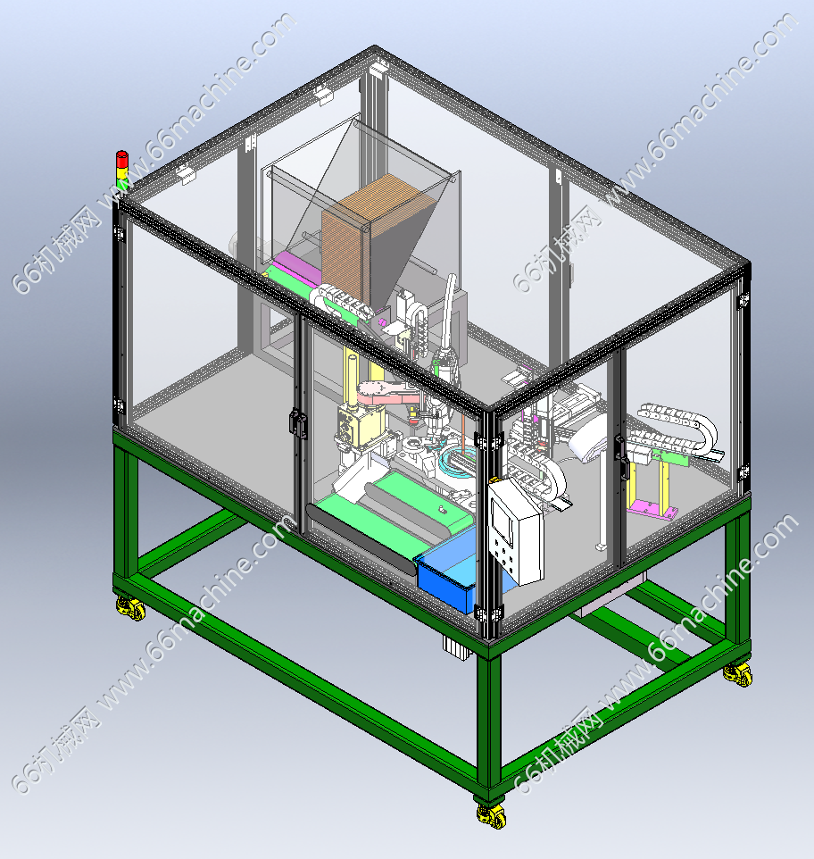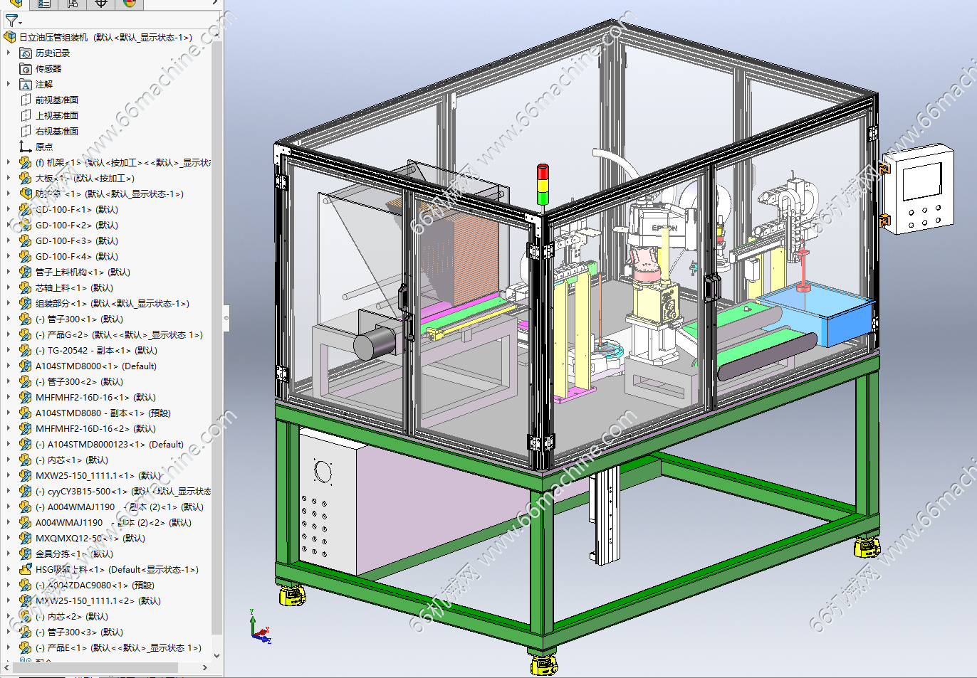 本设备为某企业油压管及其附件(金具)组装机,主要包含管子上料模块、金具分拣模块、机械手上料模块、内芯上料模块及组装模块等组成,金具是铁制或铝制金属附件的统称,大部分金具在运行中需要承受较大的拉力,有的还要同时保证电气方面接触良好。本设备采用自动管子、金具自动上料并进行组装,本模型建模精巧,可供大家参考!