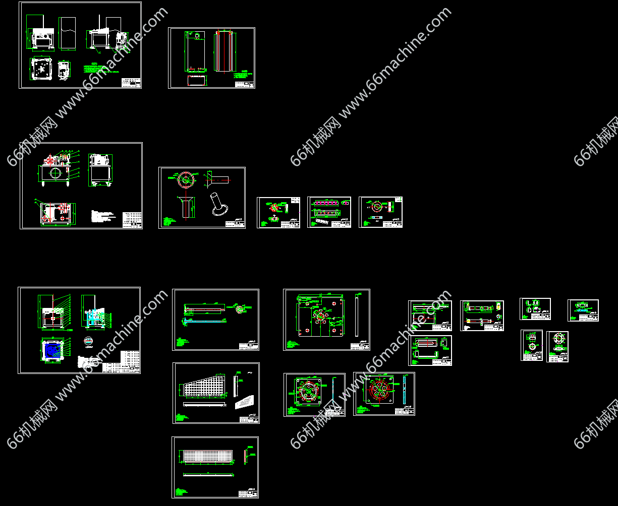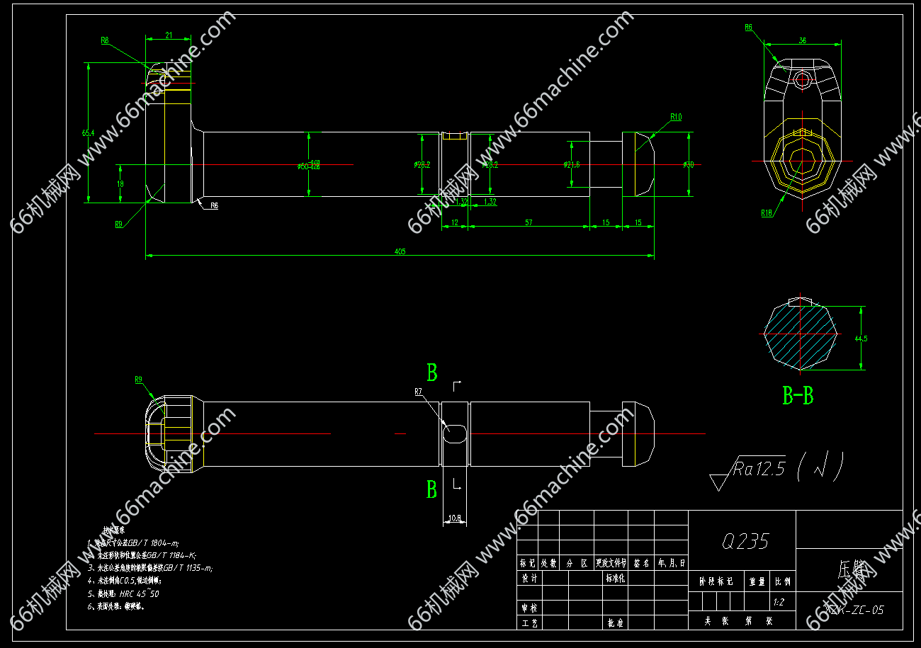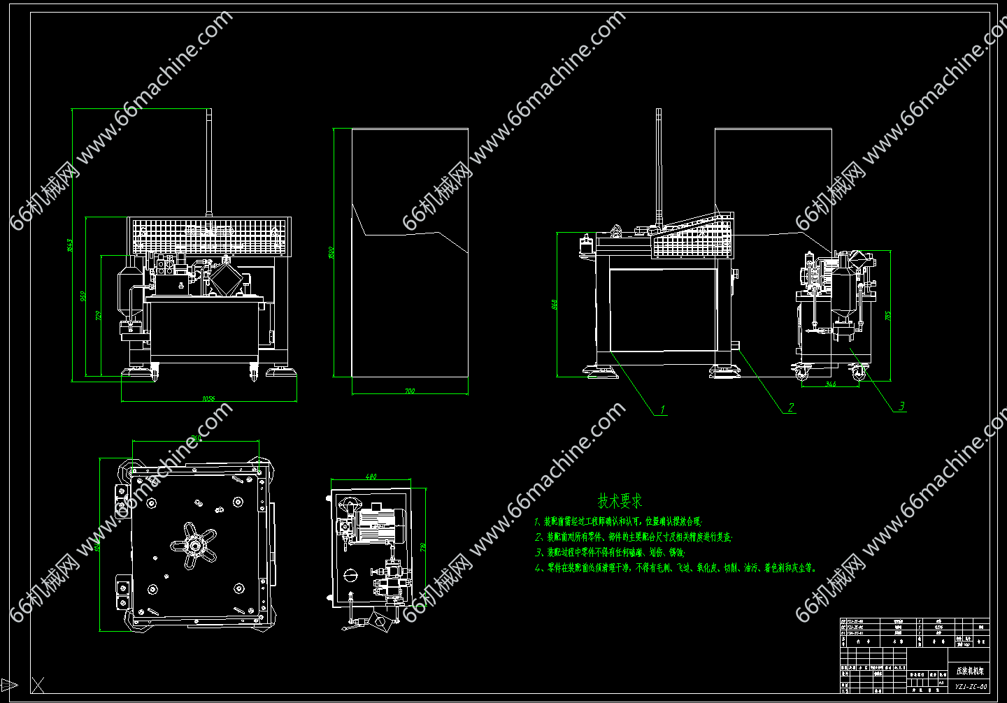 本套图纸为福特中间轴联接件液压压装机,采用一体式压臂(导向杆及压臂本体焊接加工)保证压铆螺钉时强度;铆头采用高硬度材料并配合热处理加工工艺,保证批量生产时耐磨损度;导向套用于保证压合时力度方向控制,不会产生对液压缸影响;底座加工有导向定位槽,防止压臂翻转计轴线转动,确保压合位置的准确性。 工装机构配有位移传感器系统,可以进行对压铆工作过程中压头移动进行检测,为整个系统的控制及检测系统提供参数。