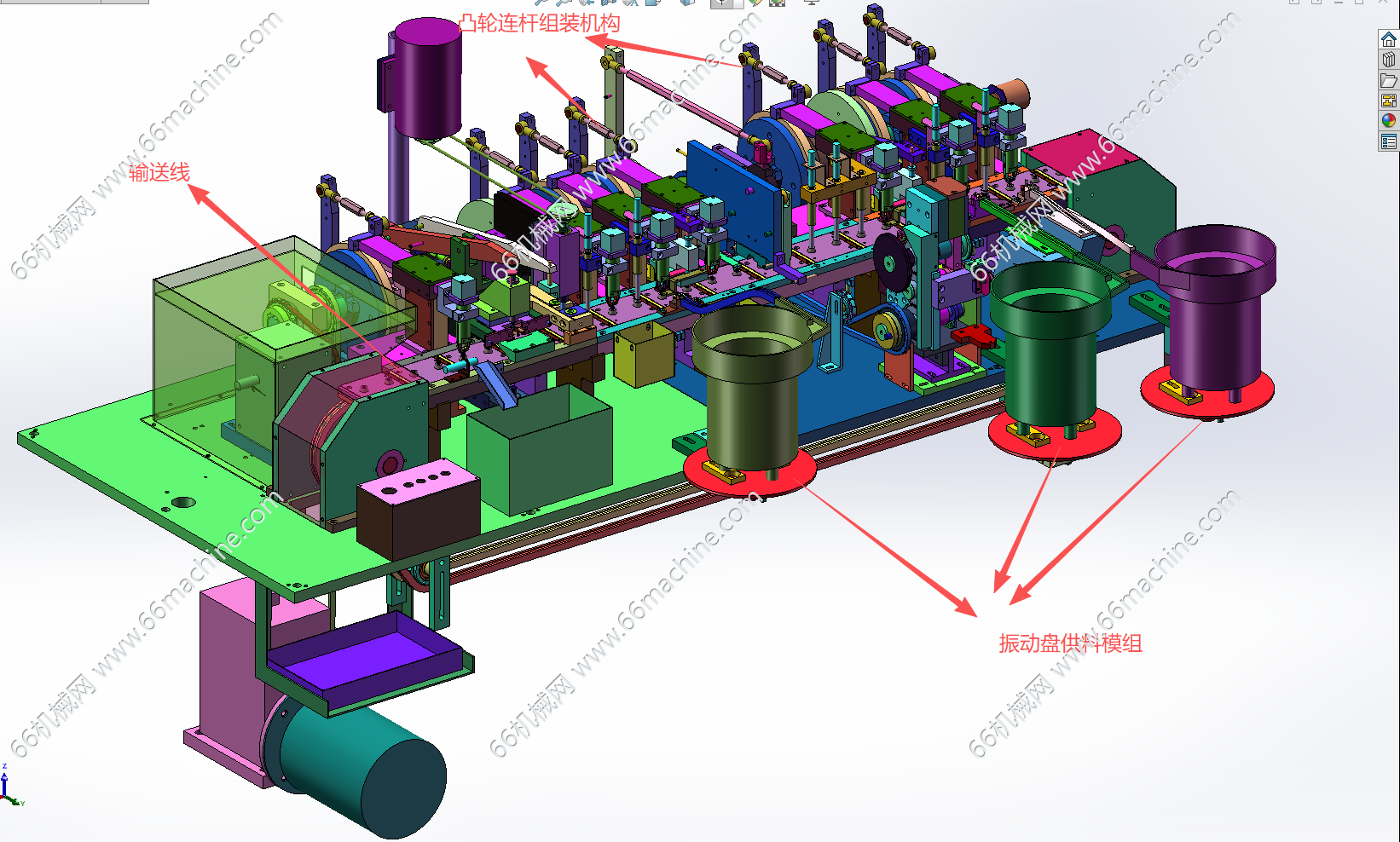 本设备为某企业轮胎气门芯组装机,主要由下机架、机罩、多组凸轮连杆组装机构、振动盘供料模组、输送线等组成,可实现气门芯零部件的自动上料及组装作业,本模型建模精巧,包含3D、BOM及方案简介PPT,仅供大家参考!